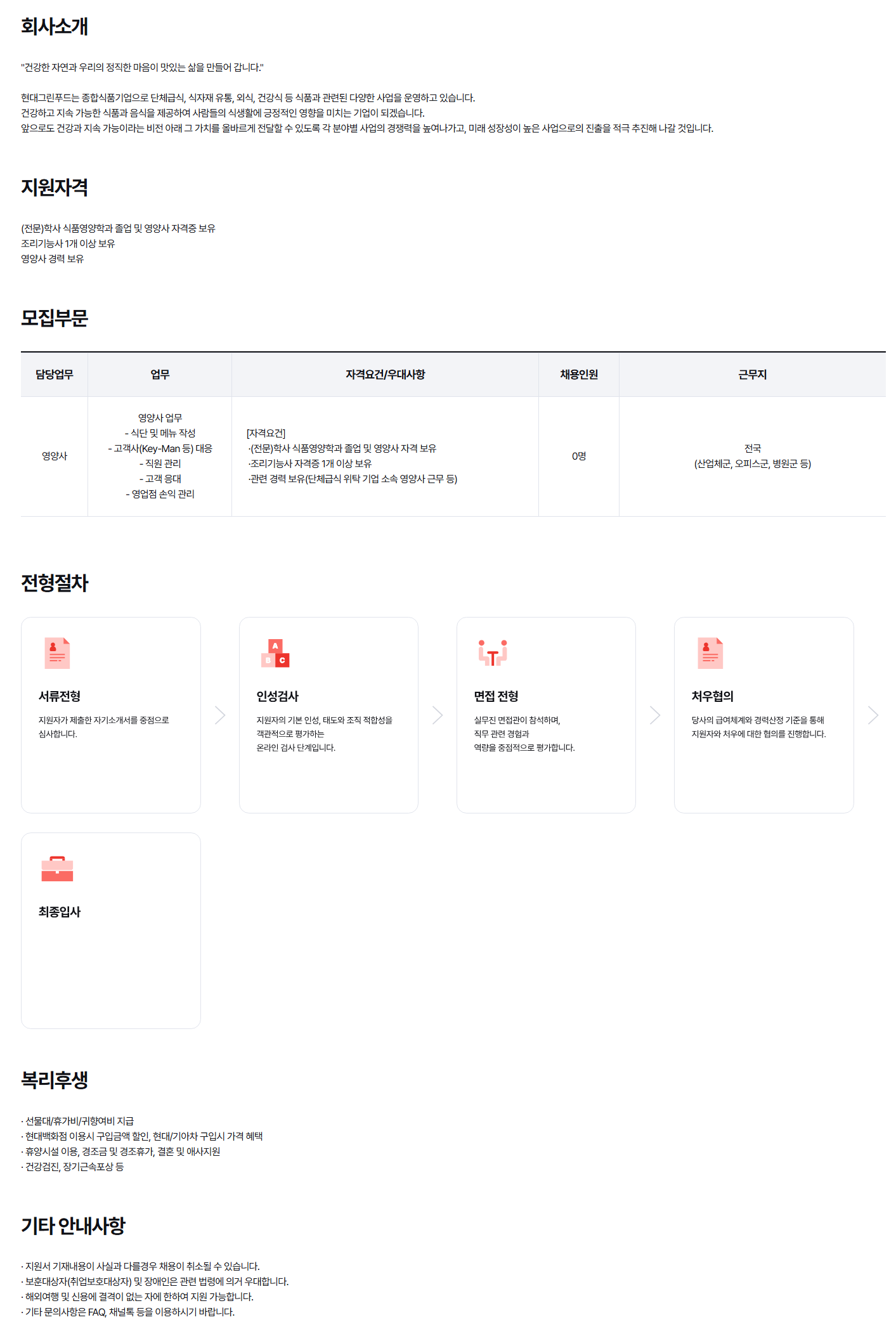 Çö´ë±×¸°Çªµå´Â Á¾ÇÕ½Äǰ±â¾÷À¸·Î ´Üü±Þ½Ä, ½ÄÀÚÀç À¯Åë, ¿Ü½Ä, °Ç°½Ä µî ½Äǰ°ú °ü·ÃµÈ ´Ù¾çÇÑ »ç¾÷À» ¿î¿µÇϰí ÀÖ½À´Ï´Ù.
