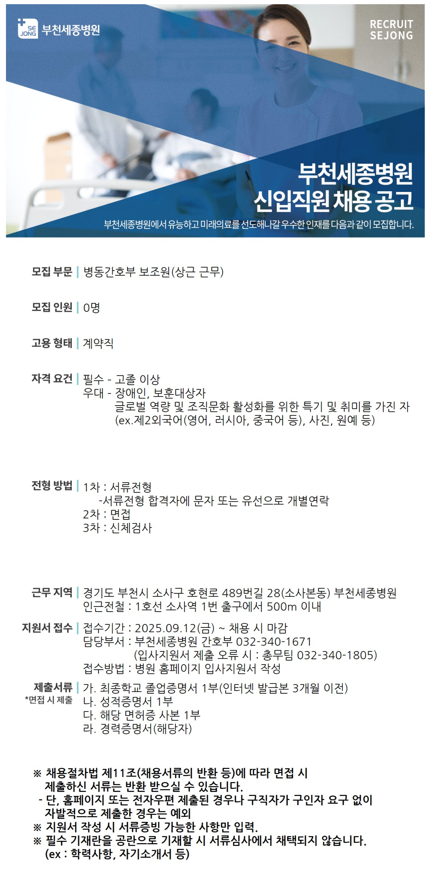 [ºÎõ¼¼Á¾º´¿ø] º´µ¿°£È£ºÎ º¸Á¶¿ø(»ó±Ù±Ù¹«) ä¿ë°ø°í