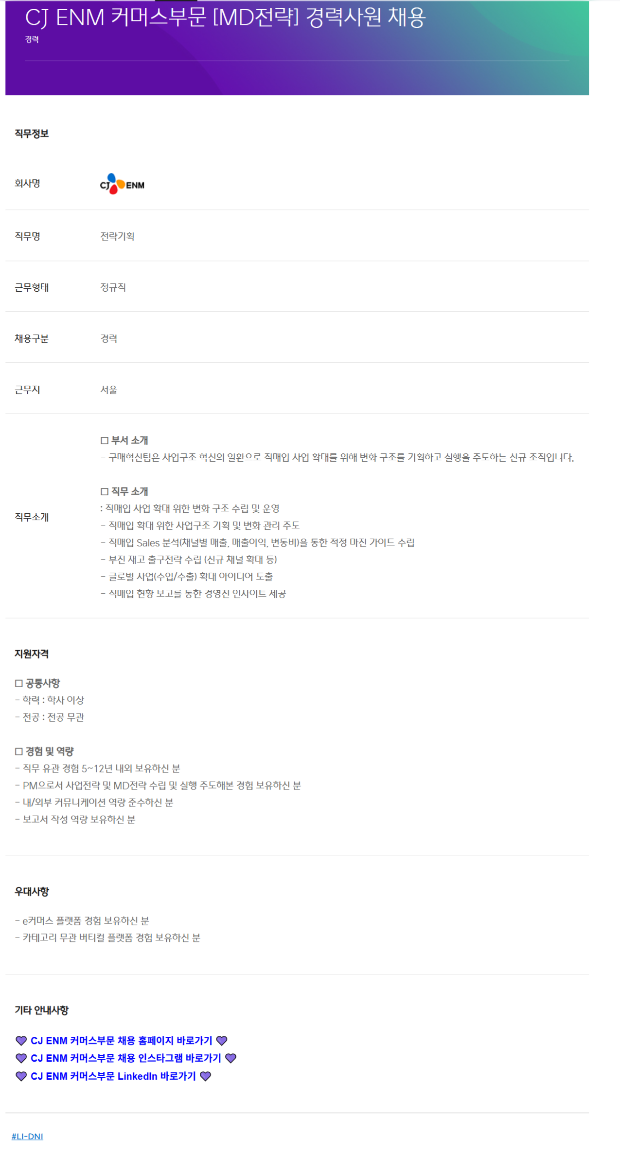 CJ ENM Ä¿¸Ó½ººÎ¹® [MDÀü·«] °æ·Â»ç¿ø ä¿ë