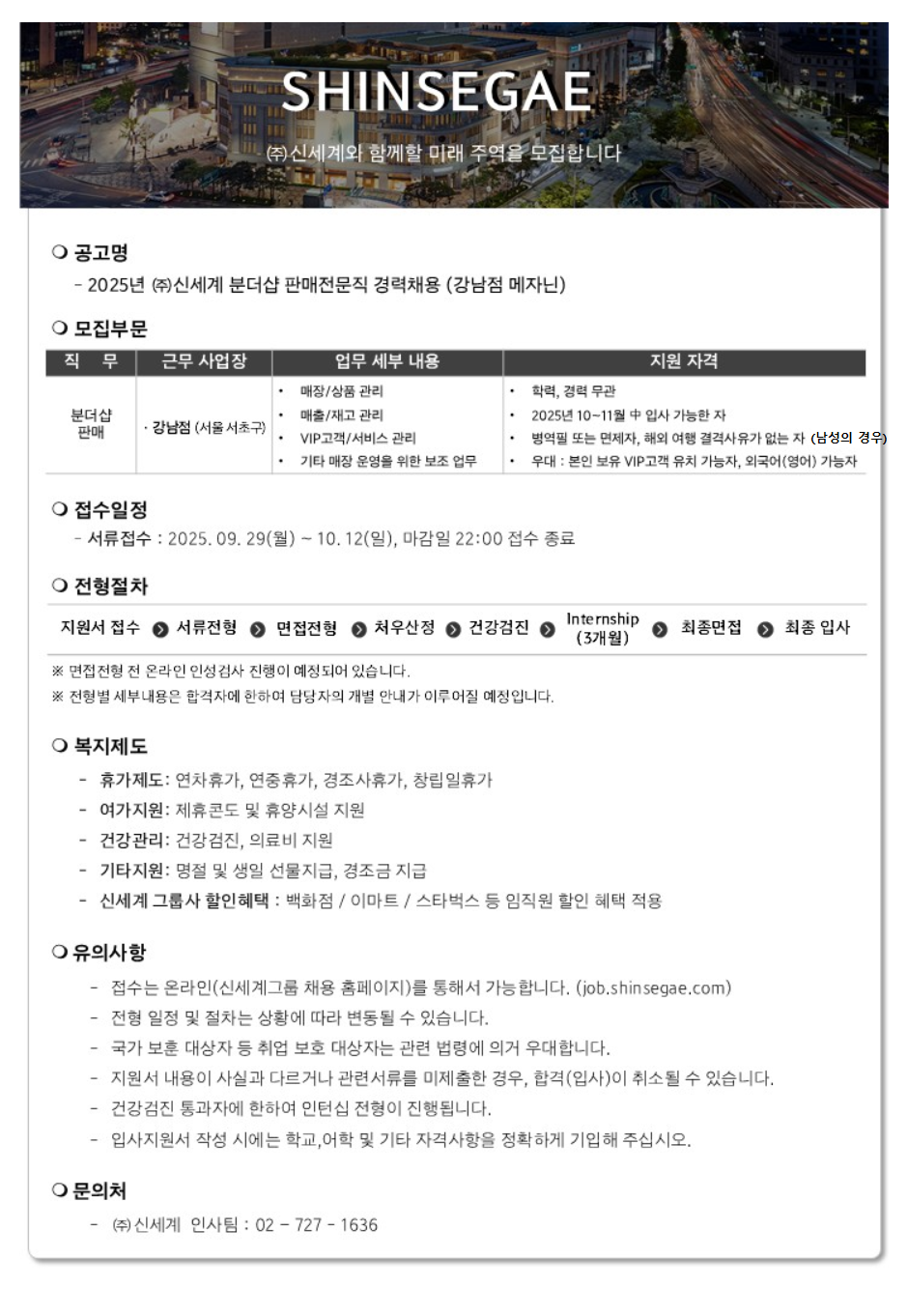 (ÁÖ)½Å¼¼°è ºÐ´õ¼¥ ÆÇ¸ÅÀü¹®Á÷ °æ·Â ä¿ë(°³²Á¡ ¸ÞÀÚ´Ñ)