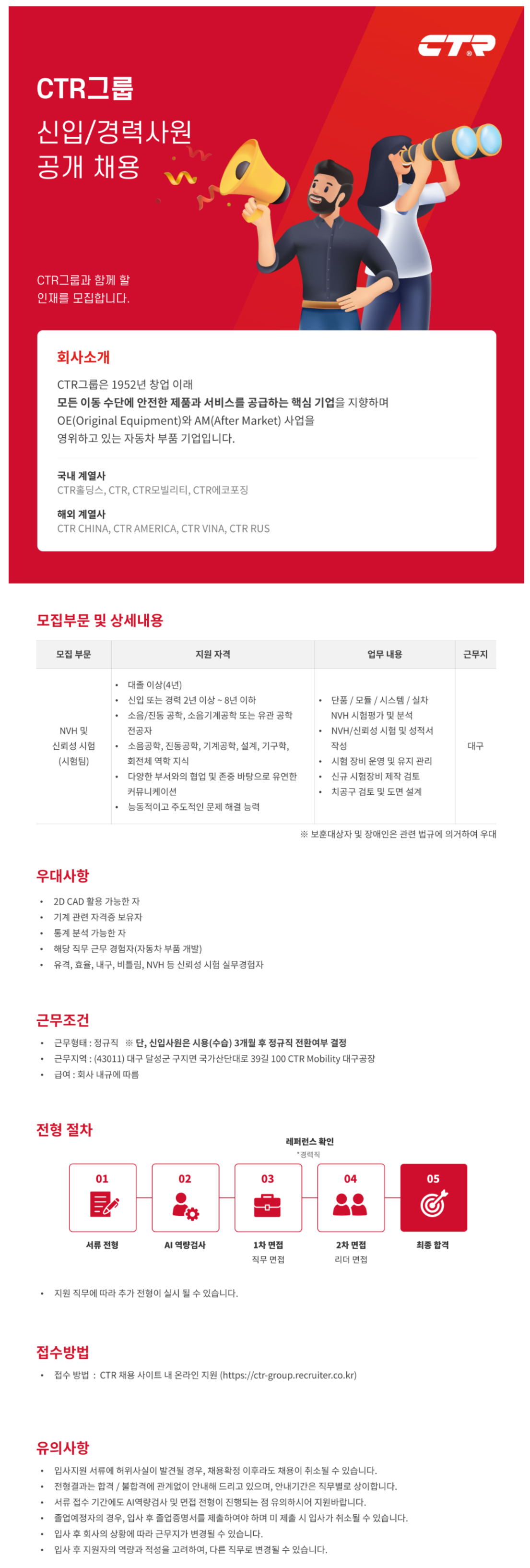 CTR Mobility NVH ¹× ½Å·Ú¼º ½ÃÇè(´ë±¸) ½ÅÀÔ/°æ·ÂÁ÷ ä¿ë