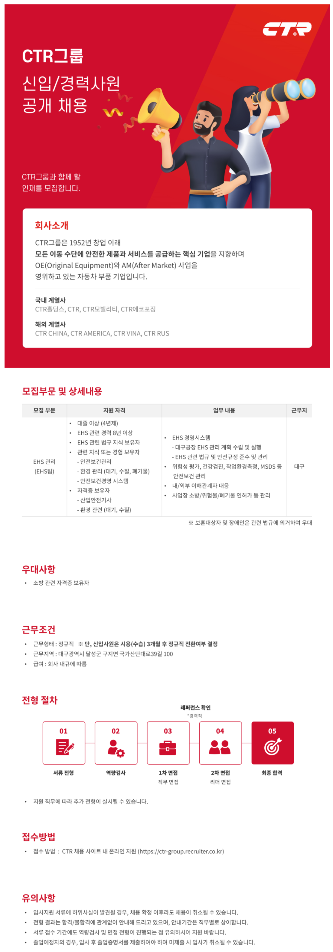 CTR Mobility EHS °ü¸®(´ë±¸) °æ·ÂÁ÷ ä¿ë