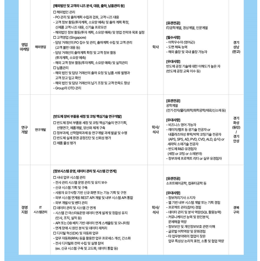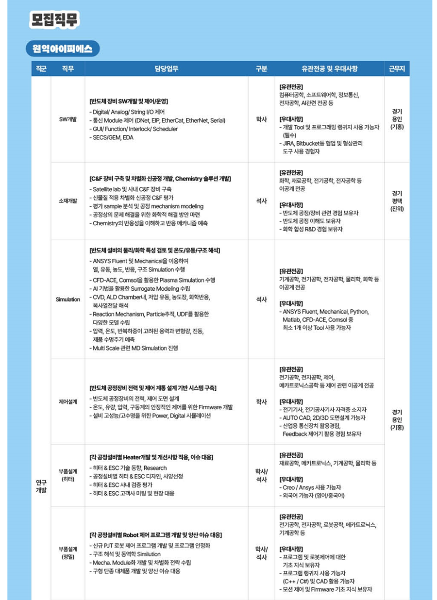 [¹ÝµµÃ¼ Àåºñ SW°³¹ß ¹×Á¦¾î/¿î¿µ] ÀüÀÚ°øÇÐ, AI°ü·Ã Àü°ø µî