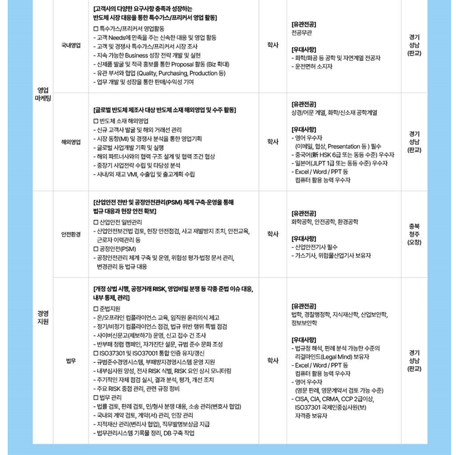 ¡¤ ¸ðÁýºÐ¾ß °ü·Ã Àü°øÀÚ À̿ܿ¡µµ µ¿ÀÏÇÑ Àü¹®¼ºÀ» °®Ãá ºÐ