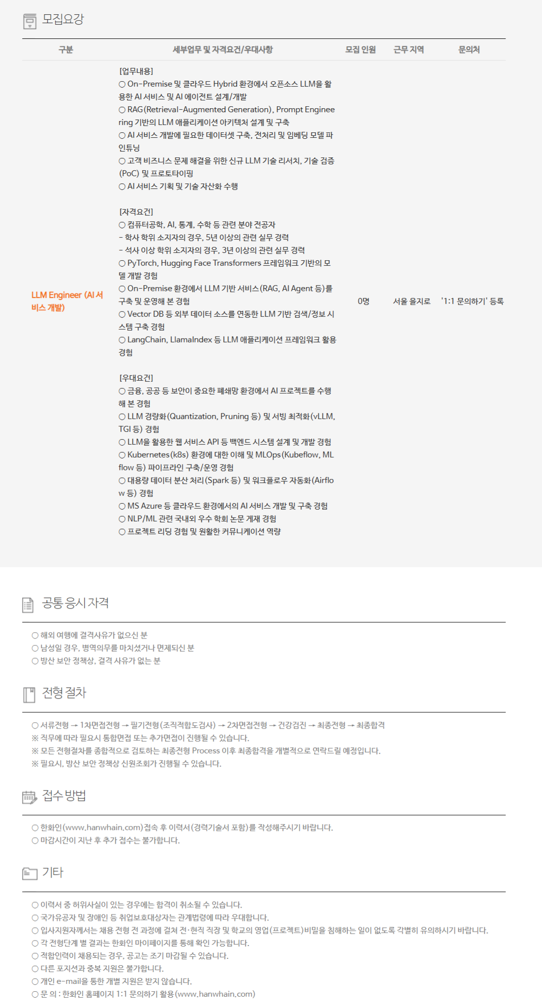 LLM Engineer (AI ¼ºñ½º °³¹ß) [¾÷¹«³»¿ë]
