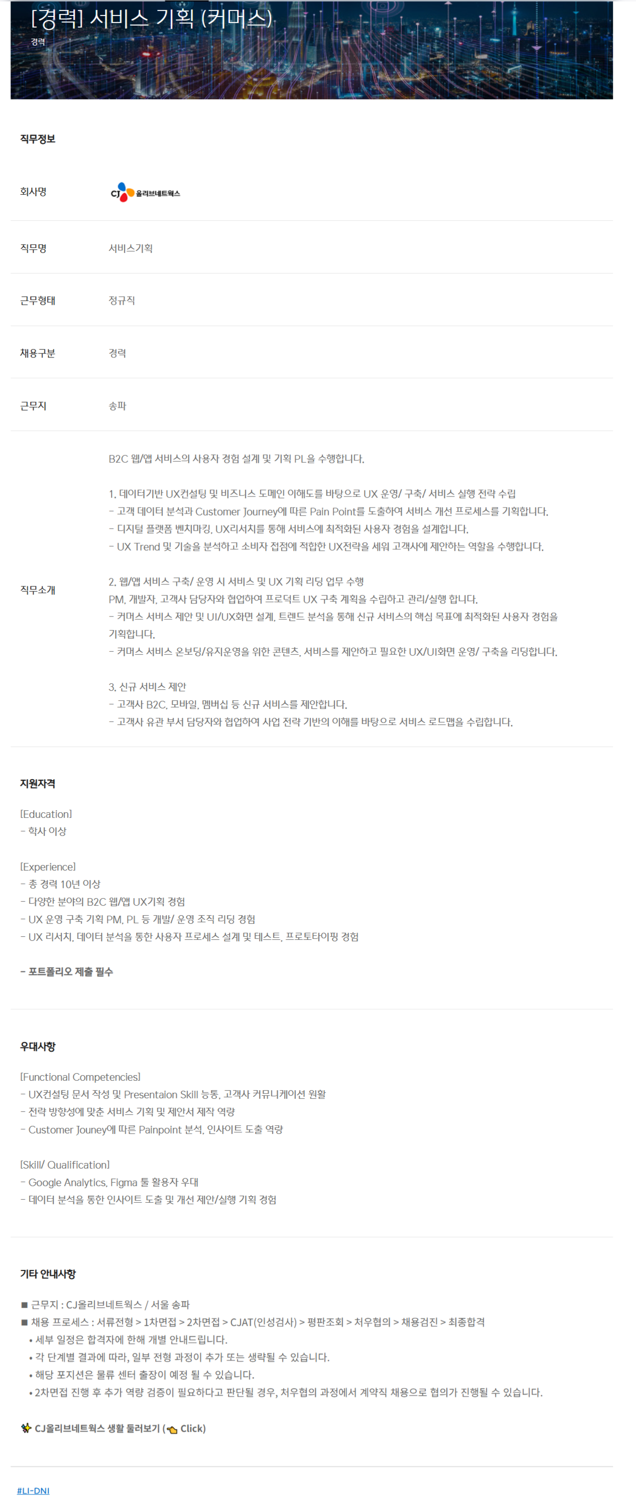 Á÷¹«¼Ò°³ B2C À¥/¾Û ¼ºñ½ºÀÇ »ç¿ëÀÚ °æÇè ¼³°è ¹× ±âȹ PLÀ» ¼öÇàÇÕ´Ï´Ù.