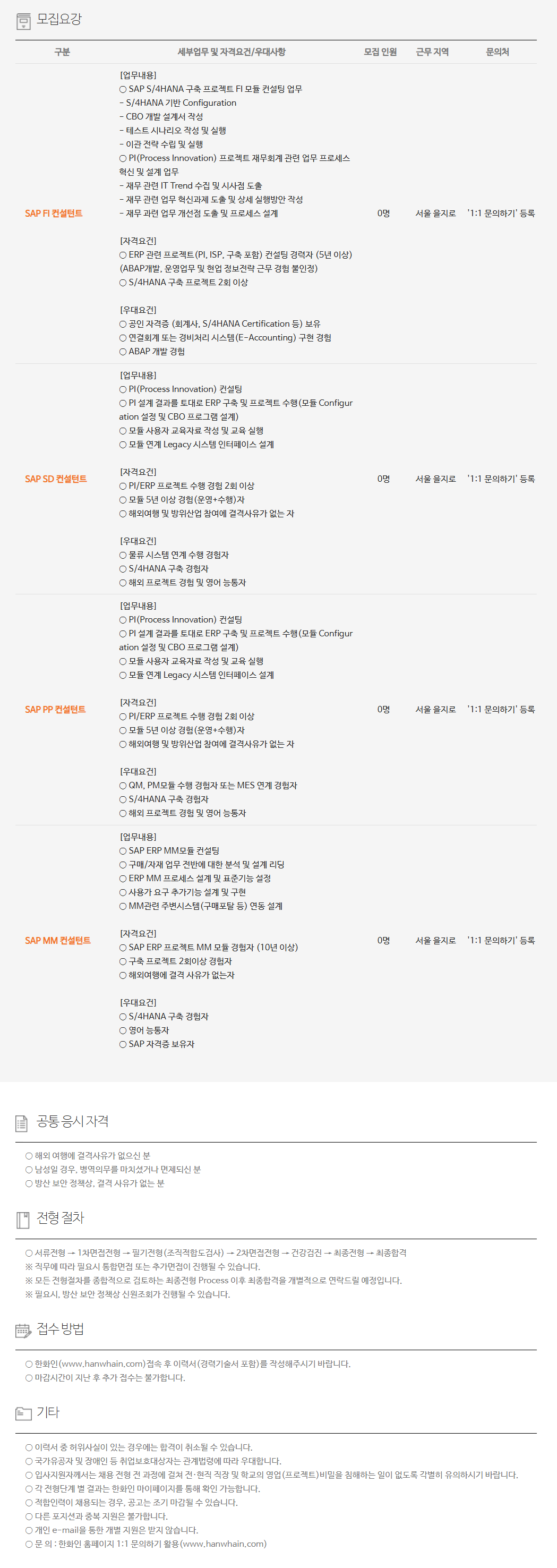 ¡Û SAP ERP ÇÁ·ÎÁ§Æ® MM ¸ðµâ °æÇèÀÚ (10³â ÀÌ»ó)