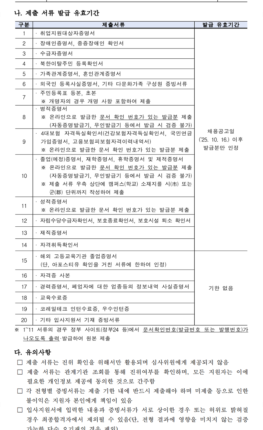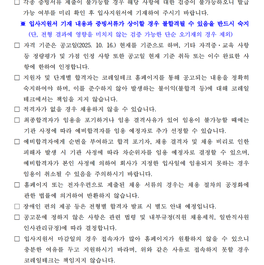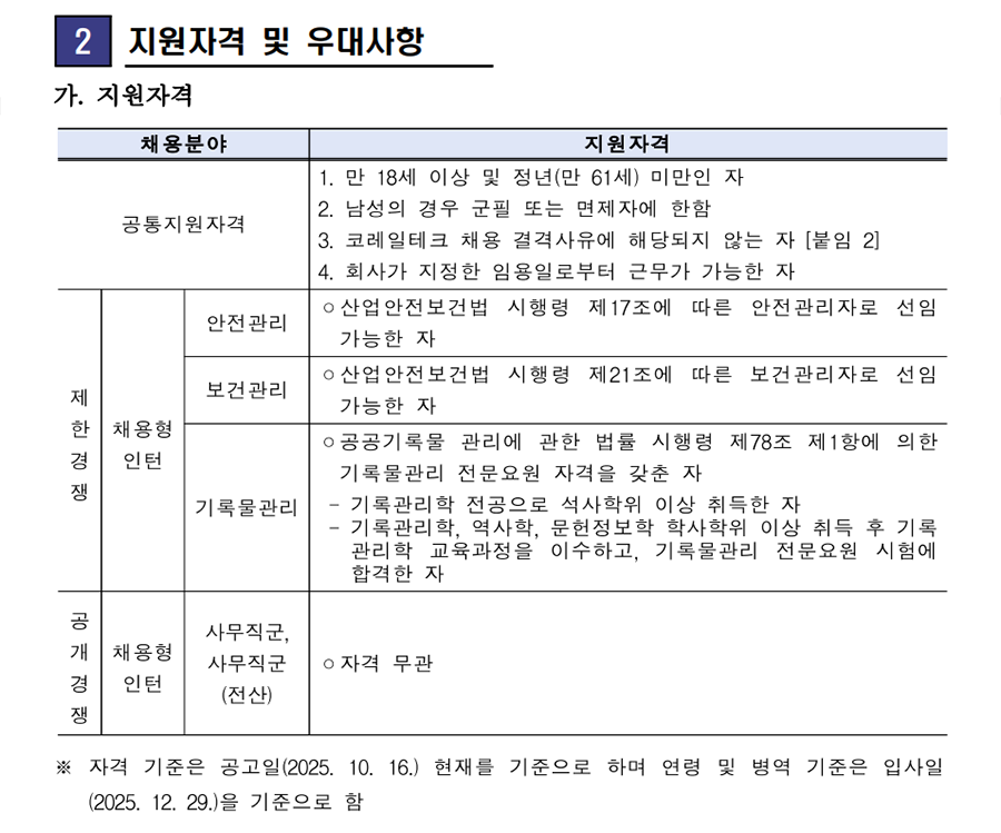 ¡Ø Áö¿øÀÚ°ÝÀº °ø°íÀÏ ÇöÀç(2025. 10. 17.) ±âÁØÀ̸ç, ¿¬·É ¹× º´¿ª ±âÁØÀº ÀÔ»çÀÏ(2026. 1. 1.)À» ±âÁØÀ¸·Î ÇÔ