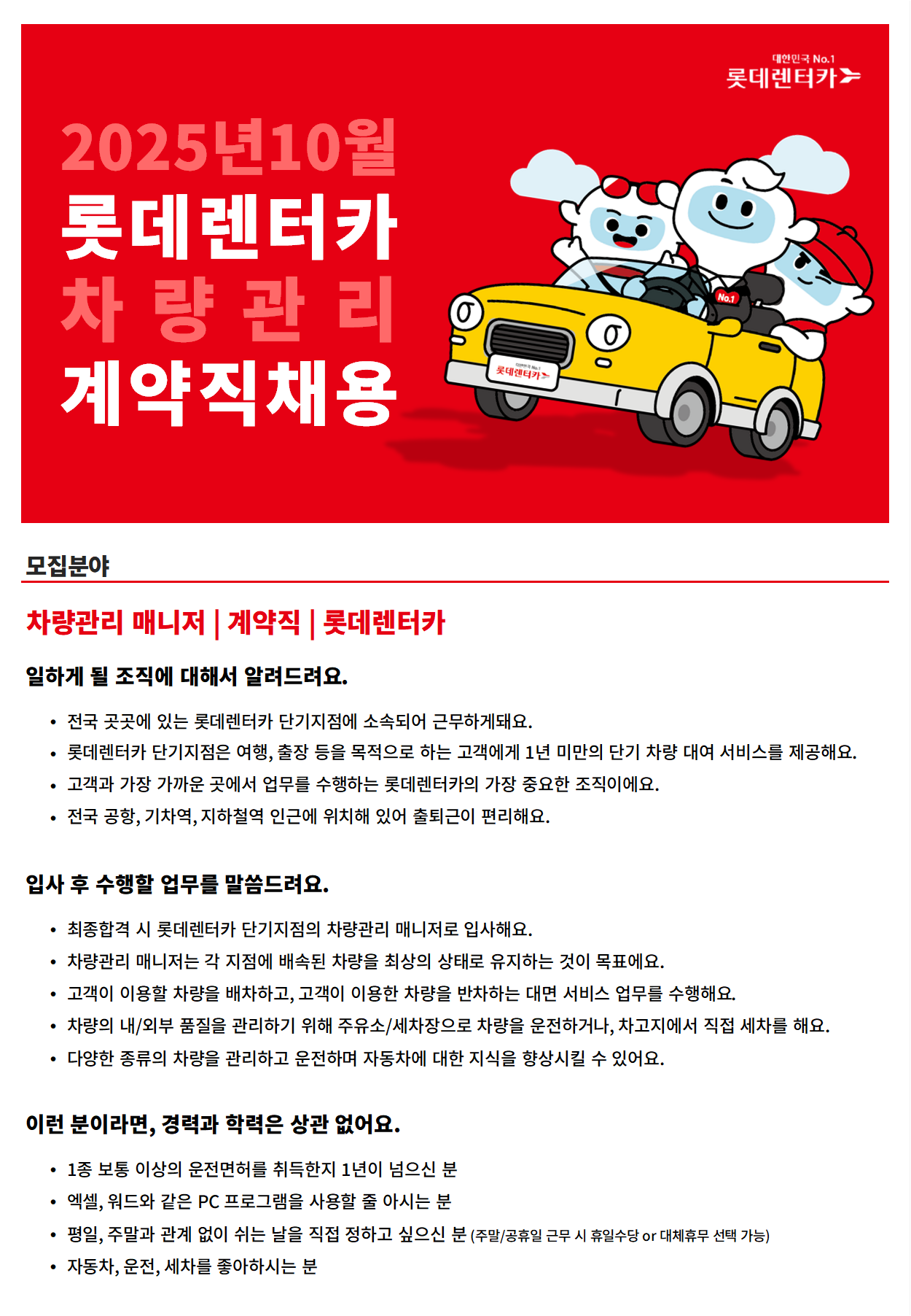 25³â 10¿ù °è¾àÁ÷(½ÅÀÔ) - Â÷·®°ü¸® (¼öµµ±Ç/´ëÀü/¿©¼ö/¸ñÆ÷)