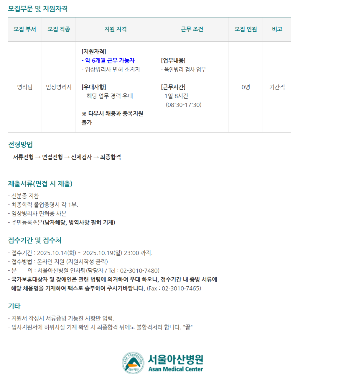 º´¸®ÆÀ ÀÓ»óº´¸®»ç ¸ðÁý