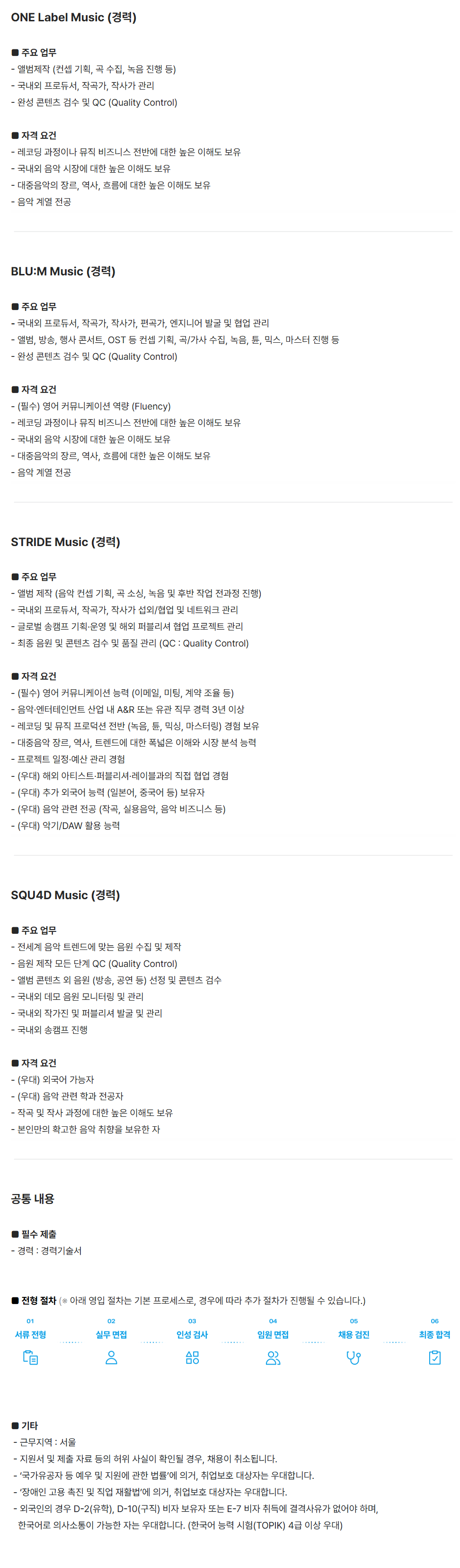 - À½¾Ç¡¤¿£ÅÍÅ×ÀÎ¸ÕÆ® »ê¾÷ ³» A&R ¶Ç´Â À¯°ü Á÷¹« °æ·Â 3³â ÀÌ»ó