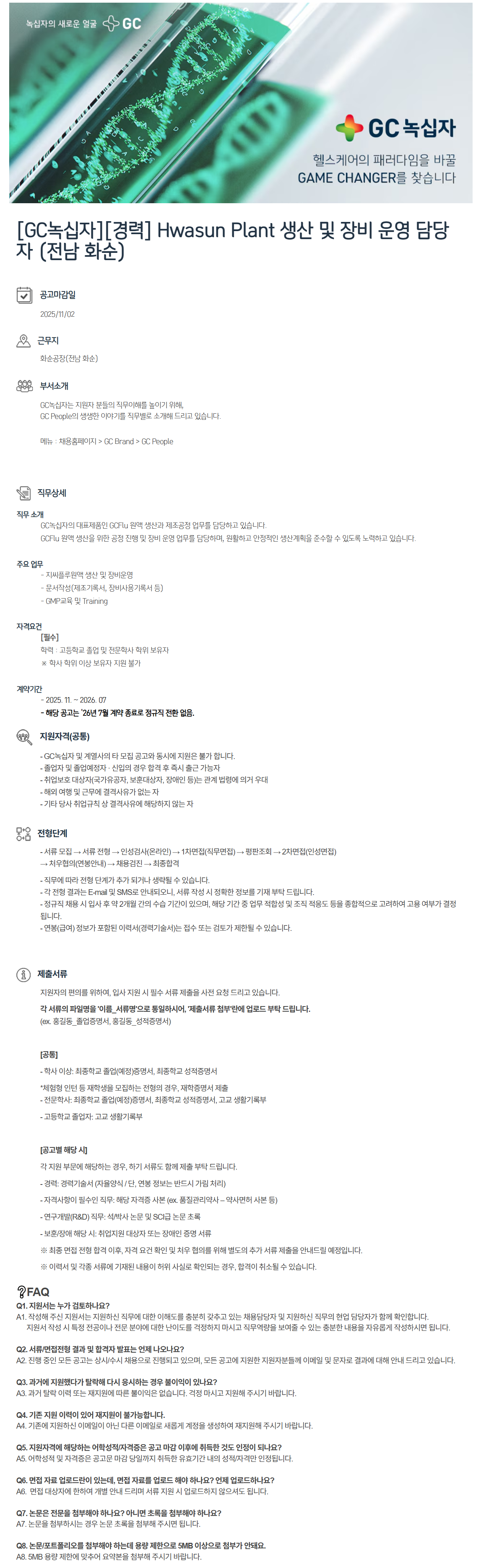 GCFlu ¿ø¾× »ý»êÀ» À§ÇÑ °øÁ¤ ÁøÇà ¹× Àåºñ ¿î¿µ ¾÷¹«¸¦ ´ã´çÇϸç, ¿øÈ°ÇÏ°í ¾ÈÁ¤ÀûÀÎ »ý»ê°èȹÀ» ÁؼöÇÒ ¼ö ÀÖµµ·Ï ³ë·ÂÇϰí ÀÖ½À´Ï´Ù.