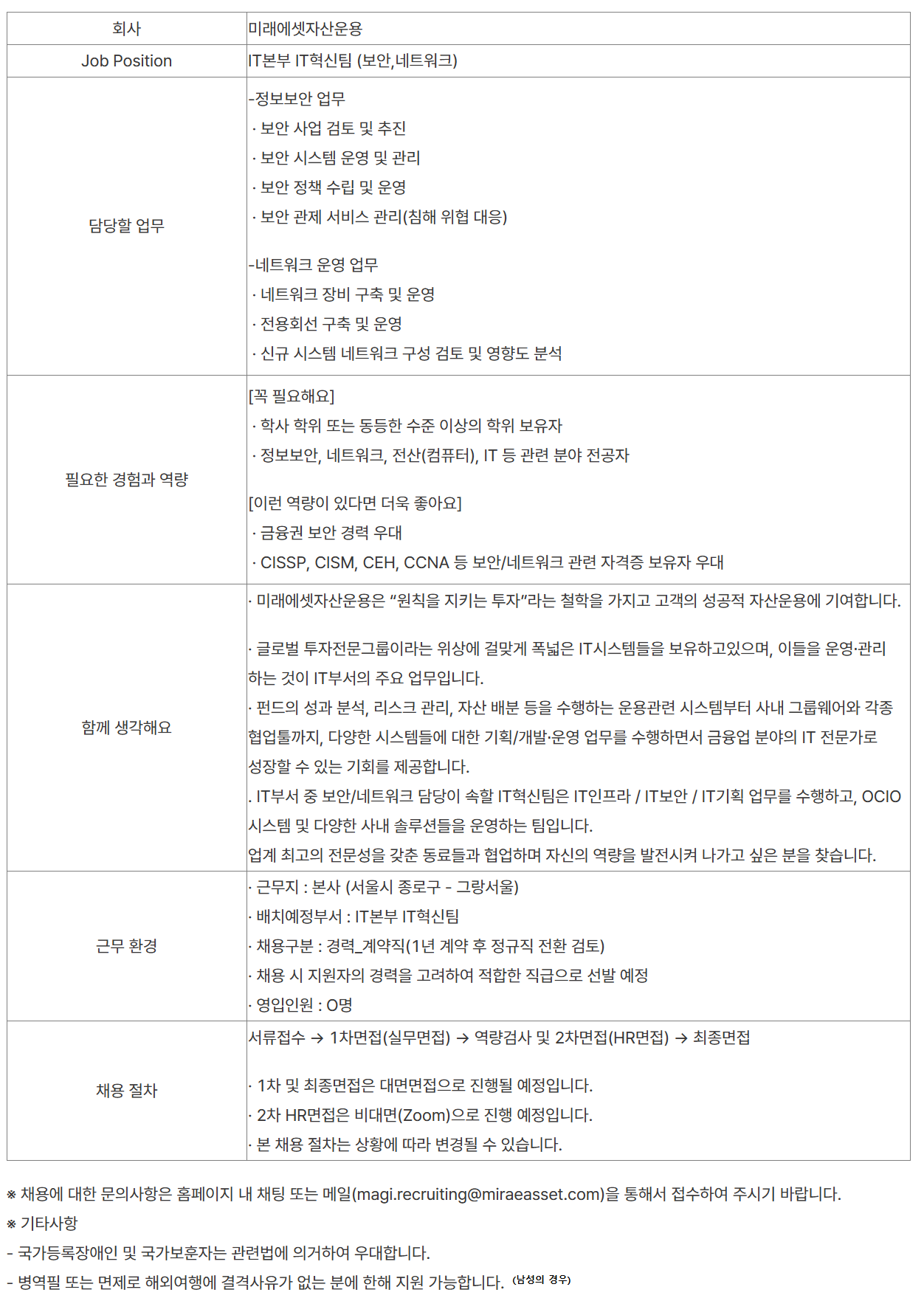 Job Position ITº»ºÎ ITÇõ½ÅÆÀ (º¸¾È,³×Æ®¿öÅ©)