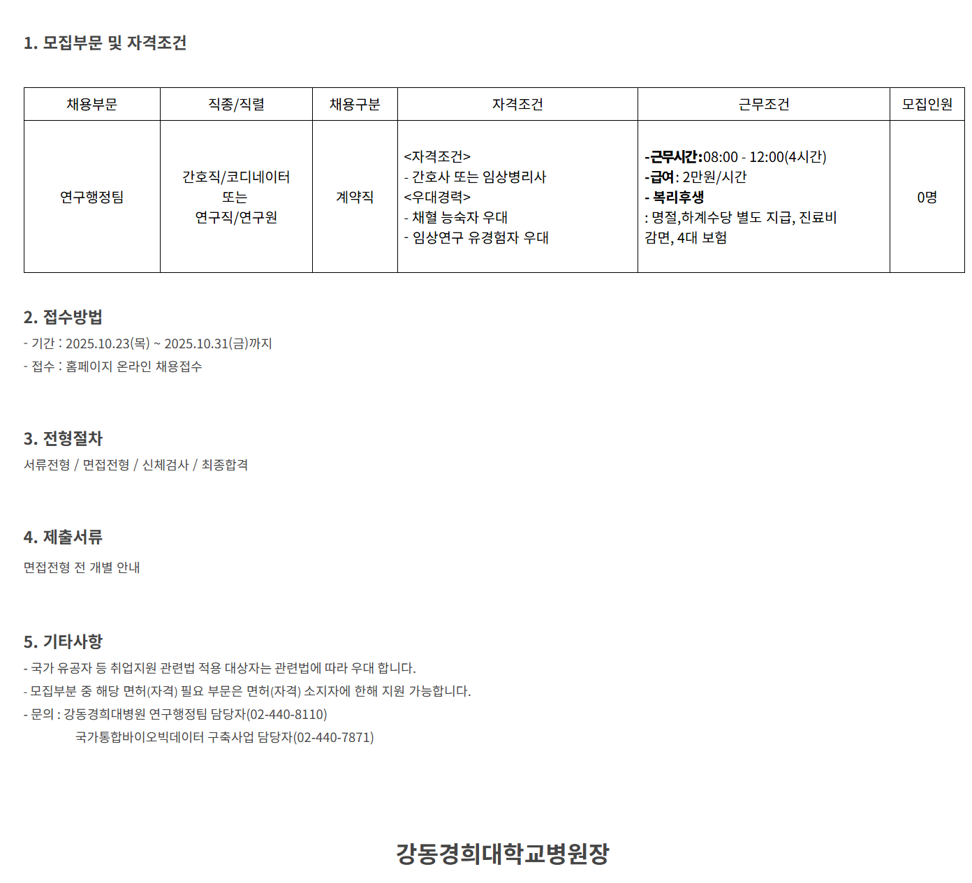 - ¹®ÀÇ : °µ¿°æÈñ´ëº´¿ø ¿¬±¸ÇàÁ¤ÆÀ ´ã´çÀÚ(***-****-****)