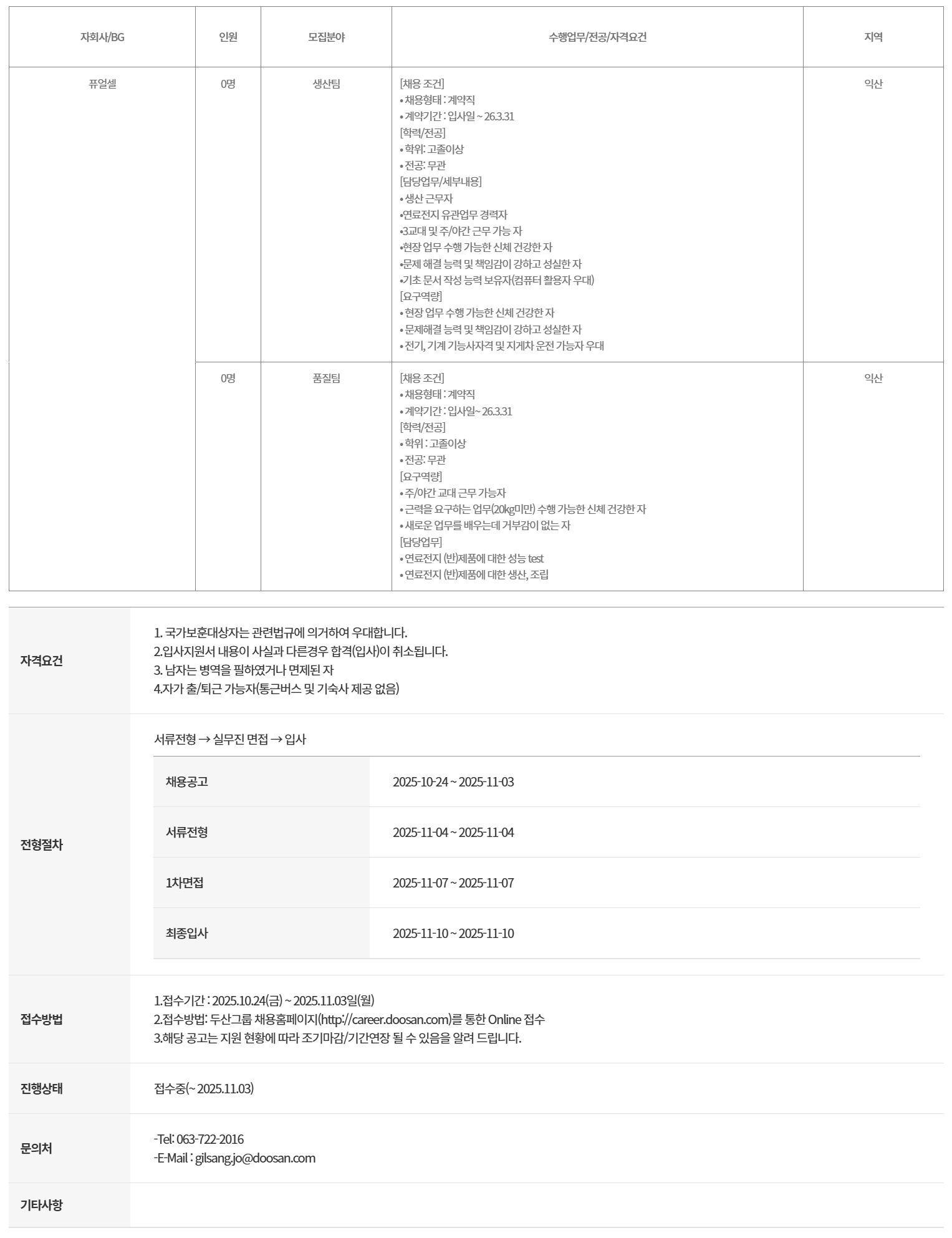 2.Á¢¼ö¹æ¹ý: µÎ»ê±×·ì ä¿ëȨÆäÀÌÁö(http://career.doosan.com)¸¦ ÅëÇÑ Online Á¢¼ö