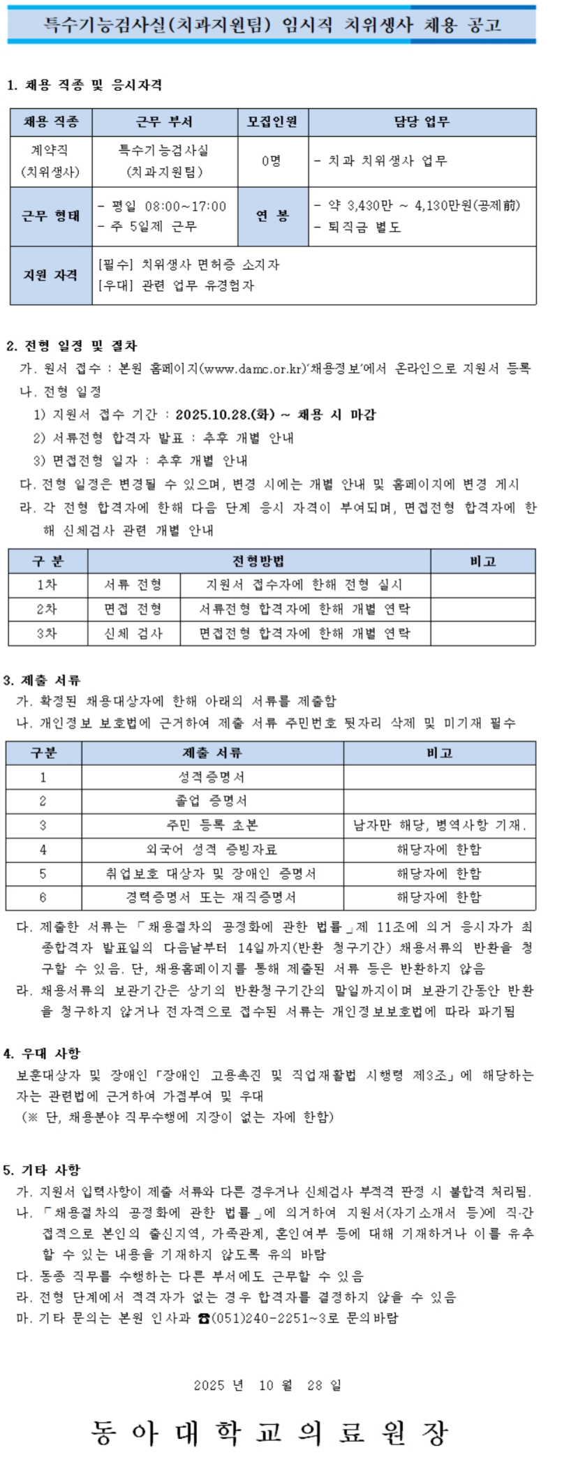 Ư¼ö±â´É°Ë»ç½Ç(Ä¡°úÁö¿øÆÀ) ÀÓ½ÃÁ÷ Ä¡À§»ý»ç °ø°³Ã¤¿ë °ø°í