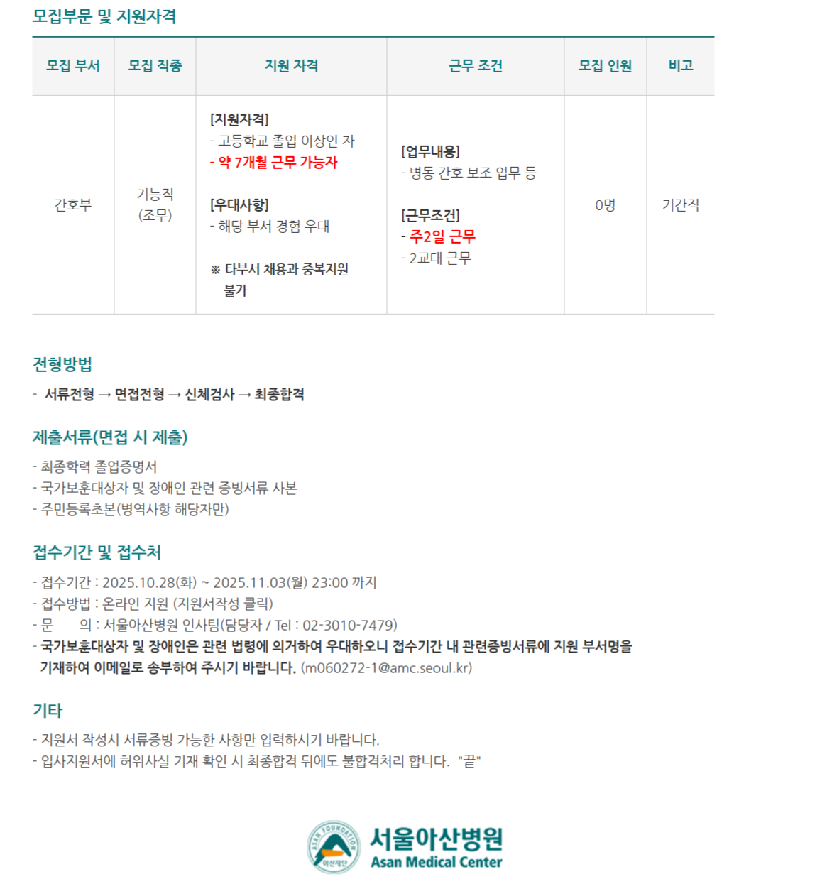 °£È£ºÎ ±â´ÉÁ÷(Á¶¹«) ¸ðÁý - ÁÖ2ÀÏ / ¾à 7°³¿ù ±Ù¹«