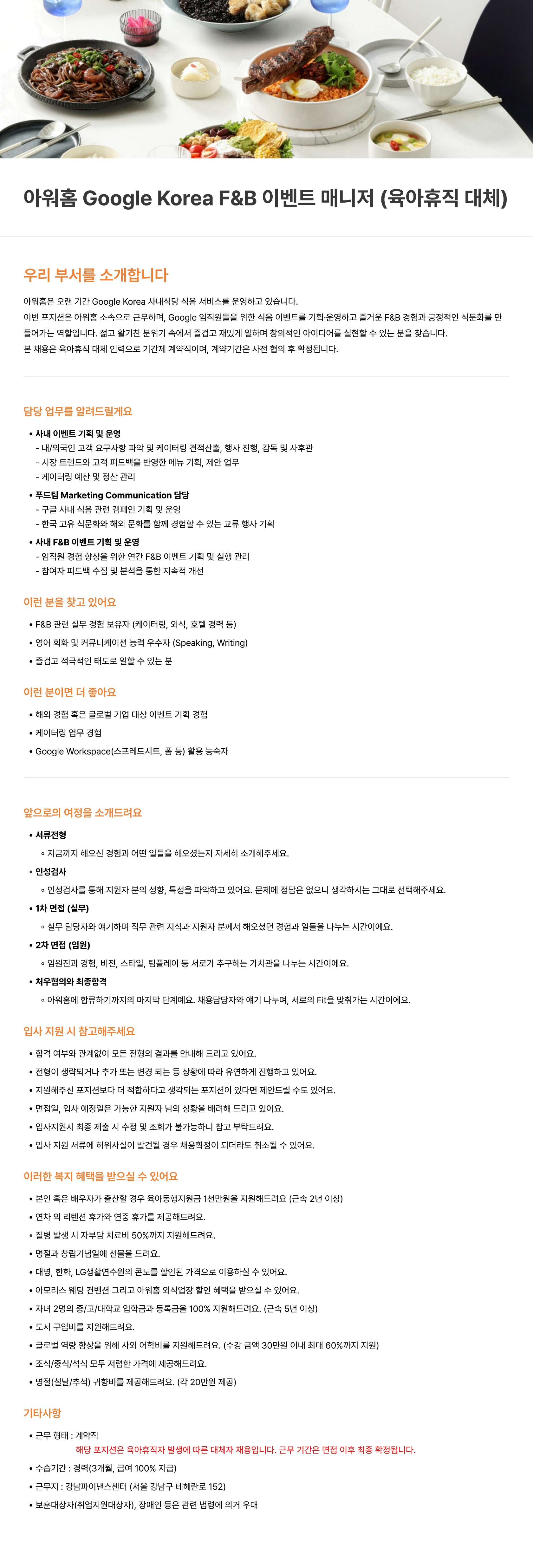 [GP] Google Korea F&B À̺¥Æ® ¸Å´ÏÀú °è¾àÁ÷ ä¿ë(À°¾ÆÈÞÁ÷ ´ëü)