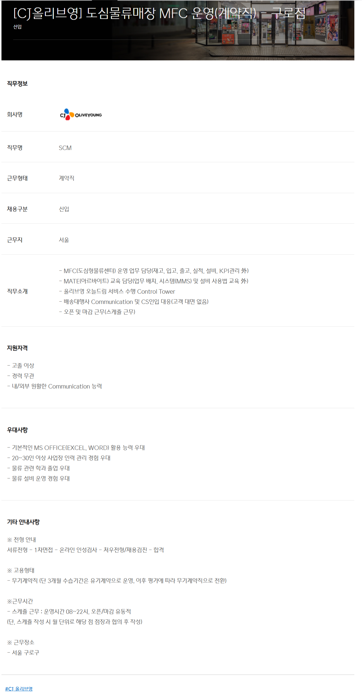 [CJ¿Ã¸®ºê¿µ] µµ½É¹°·ù¸ÅÀå MFC ¿î¿µ(°è¾àÁ÷) - ±¸·ÎÁ¡