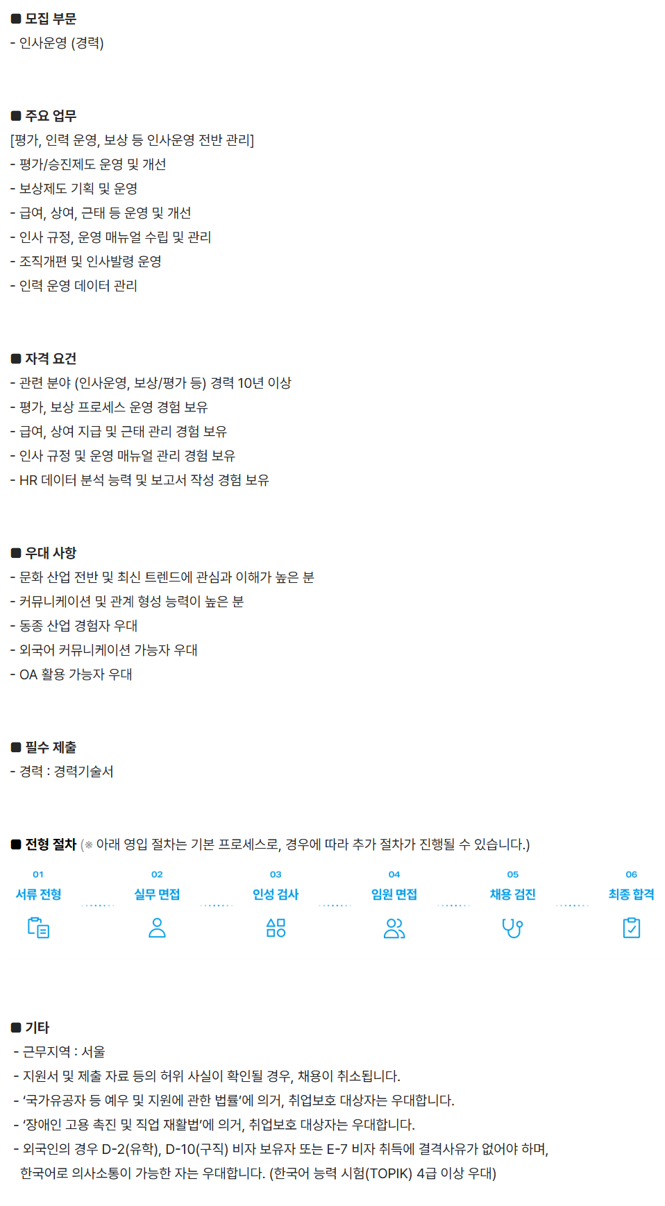 - °ü·Ã ºÐ¾ß (Àλç¿î¿µ, º¸»ó/Æò°¡ µî) °æ·Â 10³â ÀÌ»ó