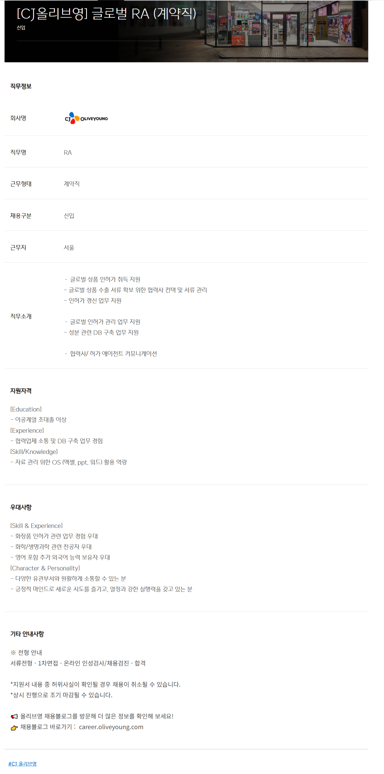 [CJ¿Ã¸®ºê¿µ] ±Û·Î¹ú RA (°è¾àÁ÷)