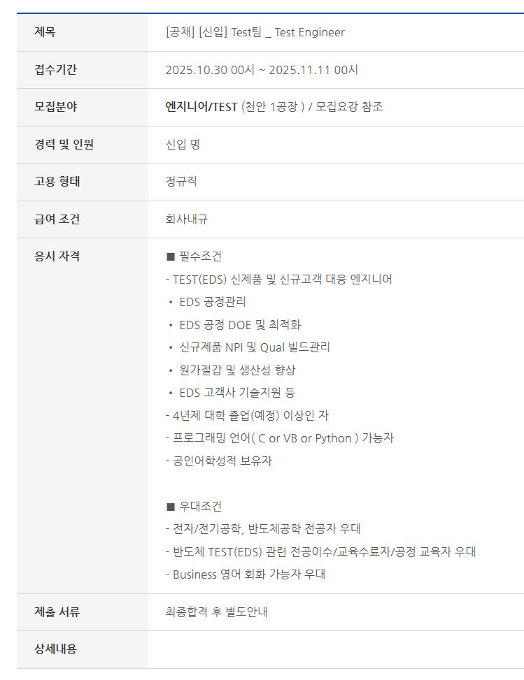 Á¦¸ñ	[°øÃ¤] [½ÅÀÔ] TestÆÀ _ Test Engineer