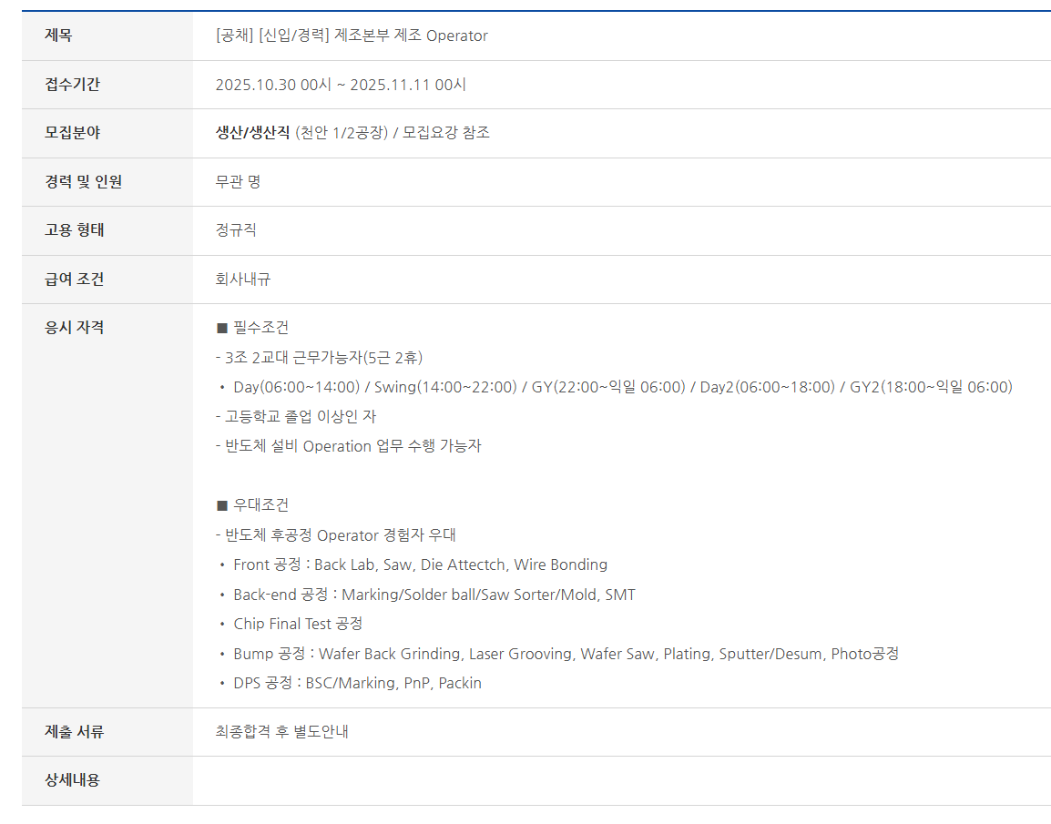 Á¦¸ñ	[°øÃ¤] [½ÅÀÔ/°æ·Â] Á¦Á¶º»ºÎ Á¦Á¶ Operator