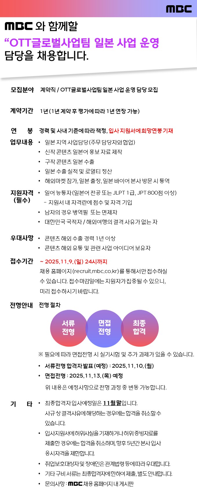 MBC OTT±Û·Î¹ú»ç¾÷ÆÀ ÀϺ»»ç¾÷ ¿î¿µ ´ã´ç ¸ðÁý