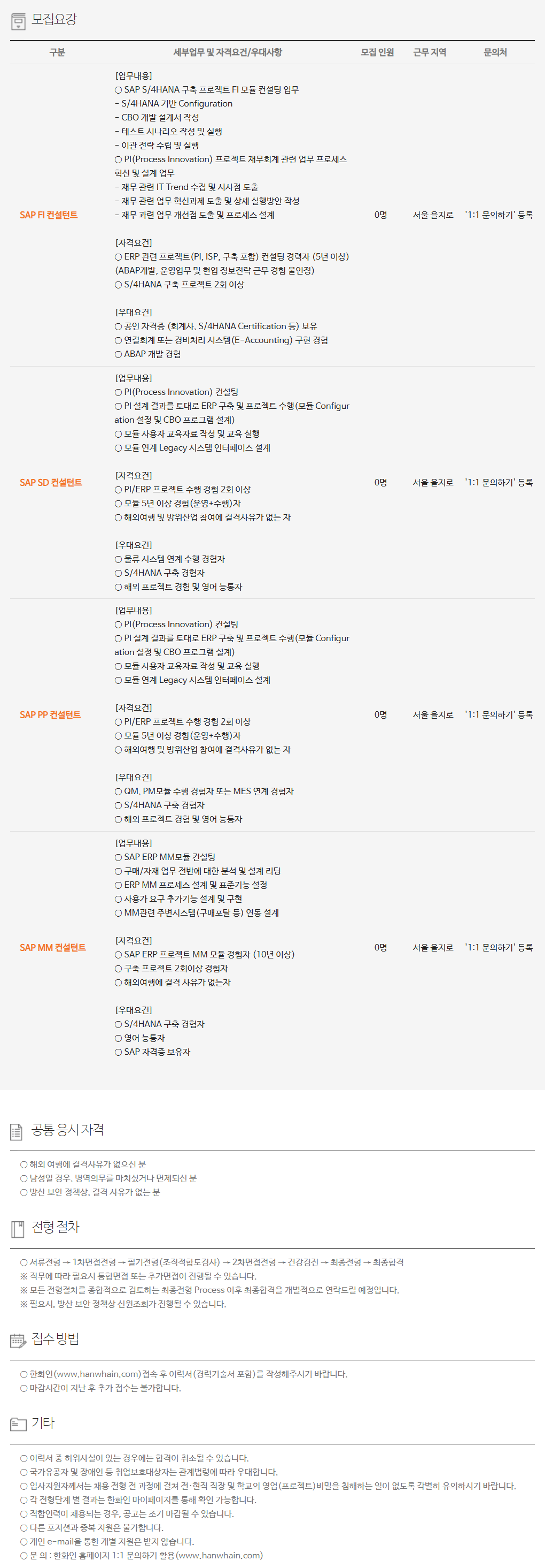 ±¸ºÐ ¼¼ºÎ¾÷¹« ¹× ÀÚ°Ý¿ä°Ç/¿ì´ë»çÇ× ¸ðÁý Àοø ±Ù¹« Áö¿ª ¹®ÀÇó SAP FI ÄÁ¼³ÅÏÆ® [¾÷¹«³»¿ë] ¡Û SAP S/4HANA ±¸Ãà ÇÁ·ÎÁ§Æ® FI ¸ðµâ ÄÁ¼³ÆÃ ¾÷¹« - S/4HANA ±â¹Ý Configuration - CBO °³¹ß ¼³°è¼­ ÀÛ¼º - Å×½ºÆ® ½Ã³ª¸®¿À ÀÛ¼º ¹× ½ÇÇà - À̰ü Àü·« ¼ö¸³ ¹× ½ÇÇà ¡Û PI(Process Innovation) ÇÁ·ÎÁ§Æ® À繫ȸ°è °ü·Ã ¾÷¹« ÇÁ·Î¼¼½º Çõ½Å ¹× ¼³°è ¾÷¹« - À繫 °ü·Ã IT Trend ¼öÁý ¹× ½Ã»çÁ¡ µµÃâ - À繫 °ü·Ã ¾÷¹« Çõ½Å°úÁ¦ µµÃâ ¹× »ó¼¼ ½ÇÇà¹æ¾È ÀÛ¼º - À繫 °ú·Ã ¾÷¹« °³¼±Á¡ µµÃâ ¹× ÇÁ·Î¼¼½º ¼³°è [ÀÚ°Ý¿ä°Ç] ¡Û ERP °ü·Ã ÇÁ·ÎÁ§Æ®(PI, ISP, ±¸Ãà Æ÷ÇÔ) ÄÁ¼³ÆÃ °æ·ÂÀÚ (5³â ÀÌ»ó) (ABAP°³¹ß, ¿î¿µ¾÷¹« ¹× Çö¾÷ Á¤º¸Àü·« ±Ù¹« °æÇè ºÒÀÎÁ¤) ¡Û S/4HANA ±¸Ãà ÇÁ·ÎÁ§Æ® 2ȸ ÀÌ»ó [¿ì´ë¿ä°Ç] ¡Û °øÀÎ ÀÚ°ÝÁõ (ȸ°è»ç, S/4HANA Certification µî) º¸À¯ ¡Û ¿¬°áȸ°è ¶Ç´Â °æºñó¸® ½Ã½ºÅÛ(E-Accounting) ±¸Çö °æÇè ¡Û ABAP °³¹ß °æÇè 0¸í ¼­¿ï À»Áö·Î '1:1 ¹®ÀÇÇϱâ' µî·Ï SAP SD ÄÁ¼³ÅÏÆ® [¾÷¹«³»¿ë] ¡Û PI(Process Innovation) ÄÁ¼³ÆÃ ¡Û PI ¼³°è °á°ú¸¦ Åä´ë·Î ERP ±¸Ãà ¹× ÇÁ·ÎÁ§Æ® ¼öÇà(¸ðµâ Configuration ¼³Á¤ ¹× CBO ÇÁ·Î±×·¥ ¼³°è) ¡Û ¸ðµâ »ç¿ëÀÚ ±³À°ÀÚ·á ÀÛ¼º ¹× ±³À° ½ÇÇà ¡Û ¸ðµâ ¿¬°è Legacy ½Ã½ºÅÛ ÀÎÅÍÆäÀ̽º ¼³°è [ÀÚ°Ý¿ä°Ç] ¡Û PI/ERP ÇÁ·ÎÁ§Æ® ¼öÇà °æÇè 2ȸ ÀÌ»ó ¡Û ¸ðµâ 5³â ÀÌ»ó °æÇè(¿î¿µ+¼öÇà)ÀÚ ¡Û ÇØ¿Ü¿©Çà ¹× ¹æÀ§»ê¾÷ Âü¿©¿¡ °á°Ý»çÀ¯°¡ ¾ø´Â ÀÚ [¿ì´ë¿ä°Ç] ¡Û ¹°·ù ½Ã½ºÅÛ ¿¬°è ¼öÇà °æÇèÀÚ ¡Û S/4HANA ±¸Ãà °æÇèÀÚ ¡Û ÇØ¿Ü ÇÁ·ÎÁ§Æ® °æÇè ¹× ¿µ¾î ´ÉÅëÀÚ 0¸í ¼­¿ï À»Áö·Î '1:1 ¹®ÀÇÇϱâ' µî·Ï SAP PP ÄÁ¼³ÅÏÆ® [¾÷¹«³»¿ë] ¡Û PI(Process Innovation) ÄÁ¼³ÆÃ ¡Û PI ¼³°è °á°ú¸¦ Åä´ë·Î ERP ±¸Ãà ¹× ÇÁ·ÎÁ§Æ® ¼öÇà(¸ðµâ Configuration ¼³Á¤ ¹× CBO ÇÁ·Î±×·¥ ¼³°è) ¡Û ¸ðµâ »ç¿ëÀÚ ±³À°ÀÚ·á ÀÛ¼º ¹× ±³À° ½ÇÇà ¡Û ¸ðµâ ¿¬°è Legacy ½Ã½ºÅÛ ÀÎÅÍÆäÀ̽º ¼³°è [ÀÚ°Ý¿ä°Ç] ¡Û PI/ERP ÇÁ·ÎÁ§Æ® ¼öÇà °æÇè 2ȸ ÀÌ»ó ¡Û ¸ðµâ 5³â ÀÌ»ó °æÇè(¿î¿µ+¼öÇà)ÀÚ ¡Û ÇØ¿Ü¿©Çà ¹× ¹æÀ§»ê¾÷ Âü¿©¿¡ °á°Ý»çÀ¯°¡ ¾ø´Â ÀÚ [¿ì´ë¿ä°Ç] ¡Û QM, PM¸ðµâ ¼öÇà °æÇèÀÚ ¶Ç´Â MES ¿¬°è °æÇèÀÚ ¡Û S/4HANA ±¸Ãà °æÇèÀÚ ¡Û ÇØ¿Ü ÇÁ·ÎÁ§Æ® °æÇè ¹× ¿µ¾î ´ÉÅëÀÚ 0¸í ¼­¿ï À»Áö·Î '1:1 ¹®ÀÇÇϱâ' µî·Ï SAP MM ÄÁ¼³ÅÏÆ® [¾÷¹«³»¿ë] ¡Û SAP ERP MM¸ðµâ ÄÁ¼³ÆÃ ¡Û ±¸¸Å/ÀÚÀç ¾÷¹« Àü¹Ý¿¡ ´ëÇÑ ºÐ¼® ¹× ¼³°è ¸®µù ¡Û ERP MM ÇÁ·Î¼¼½º ¼³°è ¹× Ç¥Áرâ´É ¼³Á¤ ¡Û »ç¿ë°¡ ¿ä±¸ Ãß°¡±â´É ¼³°è ¹× ±¸Çö ¡Û MM°ü·Ã ÁÖº¯½Ã½ºÅÛ(±¸¸ÅÆ÷Å» µî) ¿¬µ¿ ¼³°è [ÀÚ°Ý¿ä°Ç] ¡Û SAP ERP ÇÁ·ÎÁ§Æ® MM ¸ðµâ °æÇèÀÚ (10³â ÀÌ»ó) ¡Û ±¸Ãà ÇÁ·ÎÁ§Æ® 2ȸÀÌ»ó °æÇèÀÚ ¡Û ÇØ¿Ü¿©Çà¿¡ °á°Ý »çÀ¯°¡ ¾ø´ÂÀÚ [¿ì´ë¿ä°Ç] ¡Û S/4HANA ±¸Ãà °æÇèÀÚ ¡Û ¿µ¾î ´ÉÅëÀÚ ¡Û SAP ÀÚ°ÝÁõ º¸À¯ÀÚ 0¸í ¼­¿ï À»Áö·Î '1:1 ¹®ÀÇÇϱâ' µî·Ï