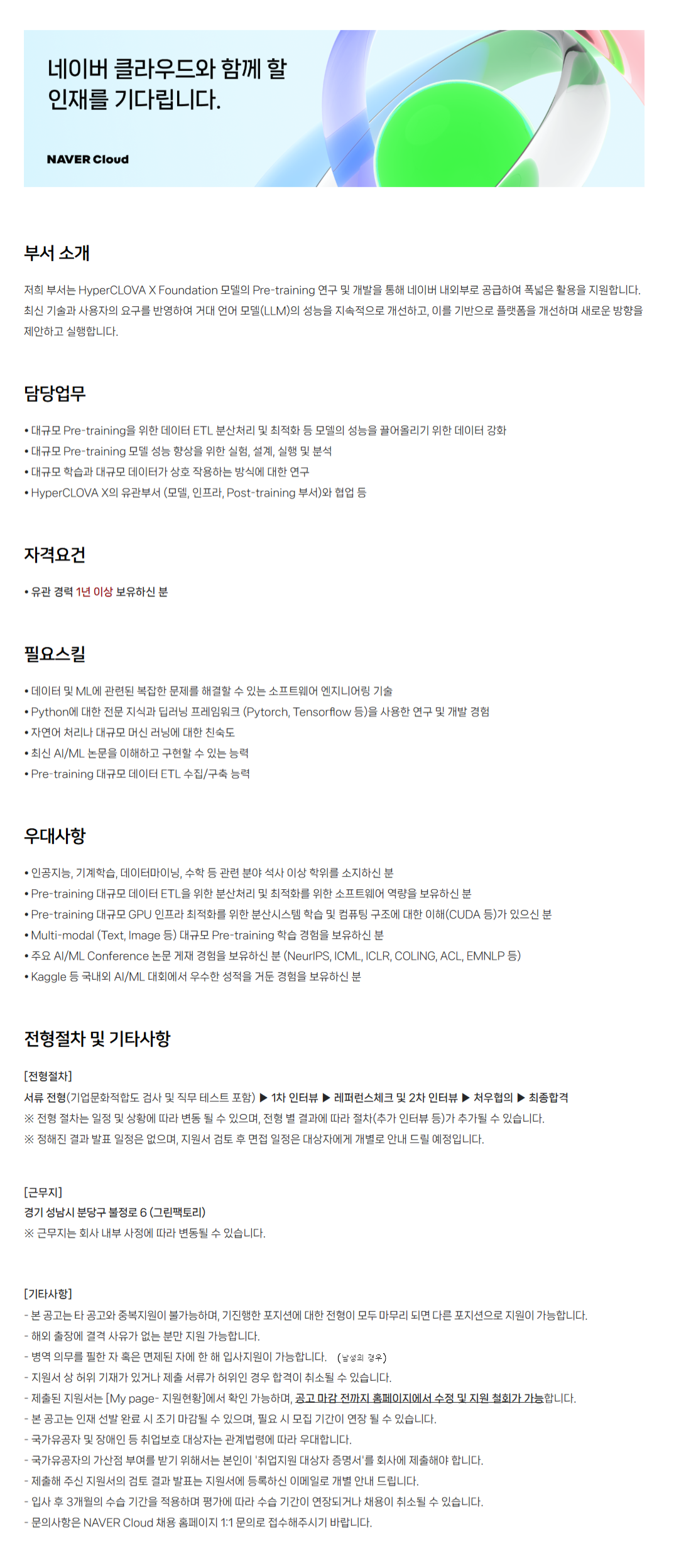 [NAVER Cloud] HyperCLOVA X Foundation Model ¿¬±¸/°³¹ß ´ã´ç (°æ·Â)