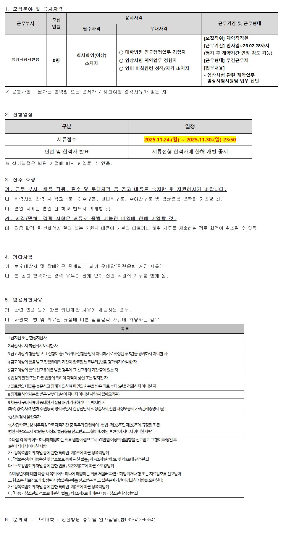 [¾È»êº´¿ø25-177] ÀÓ»ó½ÃÇèÁö¿øÆÀ °è¾àÁ÷Á÷¿ø ¸ðÁý