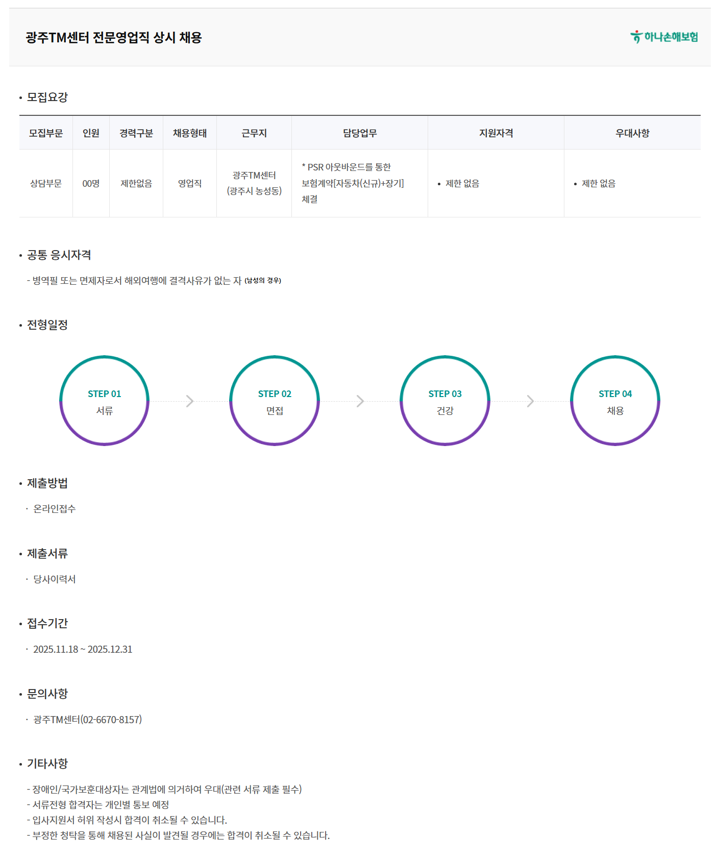 ¸ðÁýºÎ¹® Àοø °æ·Â±¸ºÐ ä¿ëÇüÅ ±Ù¹«Áö ´ã´ç¾÷¹« Áö¿øÀÚ°Ý ¿ì´ë»çÇ× »ó´ãºÎ¹® 00¸í Á¦ÇѾøÀ½ ¿µ¾÷Á÷ ±¤ÁÖTM¼¾ÅÍ(±¤Áֽà ³ó¼ºµ¿) * PSR ¾Æ¿ô¹Ù¿îµå¸¦ ÅëÇÑ º¸Çè°è¾à[ÀÚµ¿Â÷(½Å±Ô)+Àå±â] ü°á Á¦ÇÑ ¾øÀ½ Á¦ÇÑ ¾øÀ½
