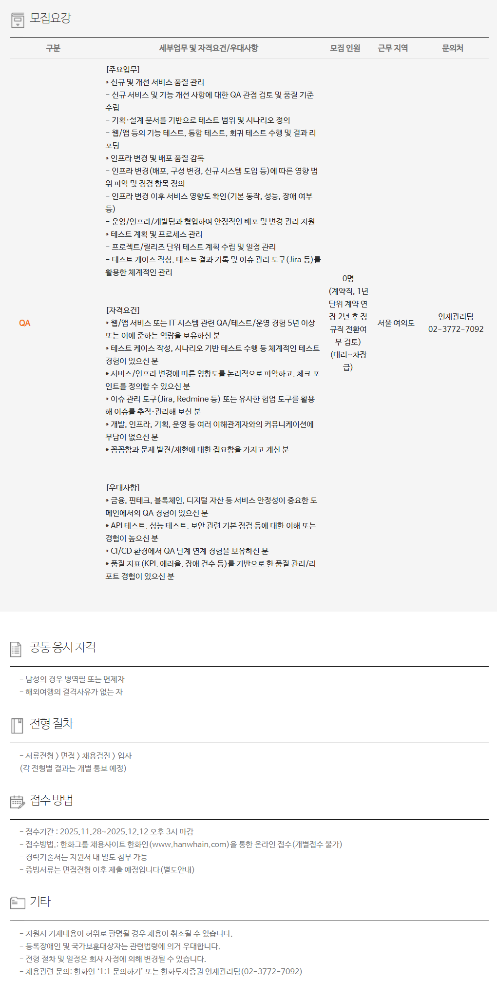 * À¥/¾Û ¼ºñ½º ¶Ç´Â IT ½Ã½ºÅÛ °ü·Ã QA/Å×½ºÆ®/¿î¿µ °æÇè 5³â ÀÌ»ó ¶Ç´Â ÀÌ¿¡ ÁØÇÏ´Â ¿ª·®À» º¸À¯ÇϽŠºÐ