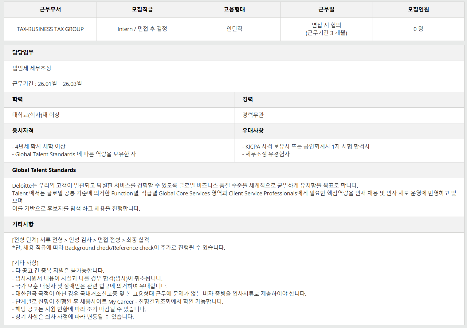 TAX-BUSINESS TAX GROUP Intern / ¸éÁ¢ ÈÄ °áÁ¤ ÀÎÅÏÁ÷ ¸éÁ¢ ½Ã ÇùÀÇ