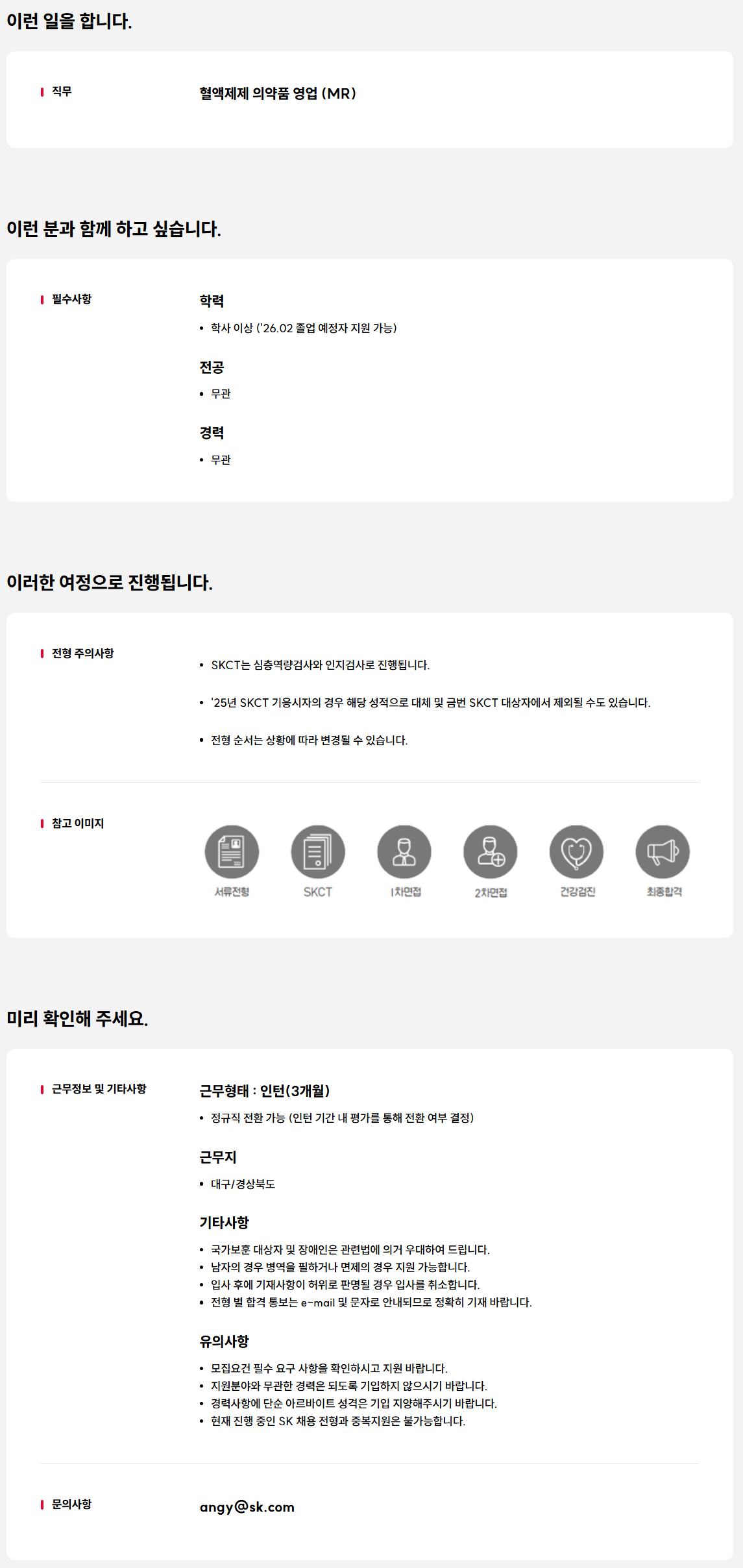 ÀÌ·± ÀÏÀ» ÇÕ´Ï´Ù. Á÷¹« Ç÷¾×Á¦Á¦ ÀǾàǰ ¿µ¾÷ (MR) ÀÌ·± ºÐ°ú ÇÔ²² ÇÏ°í ½Í½À´Ï´Ù. Çʼö»çÇ× Çз Çлç ÀÌ»ó ('26.02 Á¹¾÷ ¿¹Á¤ÀÚ Áö¿ø °¡´É) Àü°ø ¹«°ü °æ·Â ¹«°ü