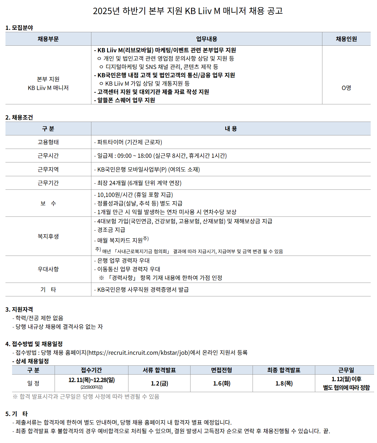 2025³â ÇϹݱ⠺»ºÎ Áö¿ø KB Liiv M ¸Å´ÏÀú ä¿ë °ø°í
