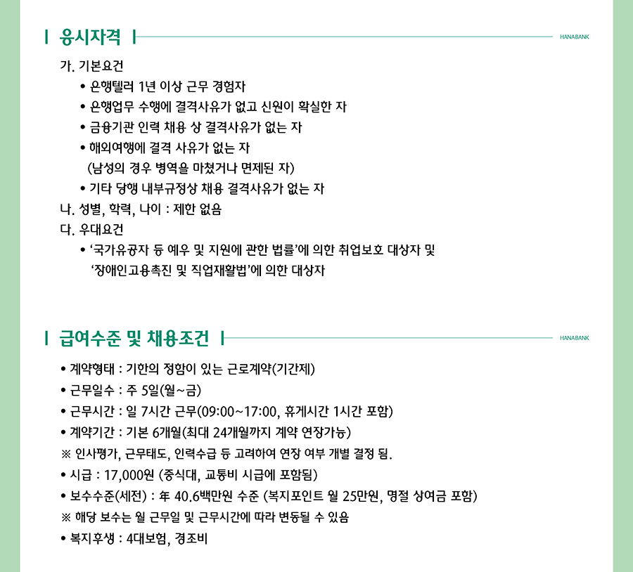 ¡á ±Þ¿©¼öÁØ ¹× ä¿ëÁ¶°Ç HANABANK