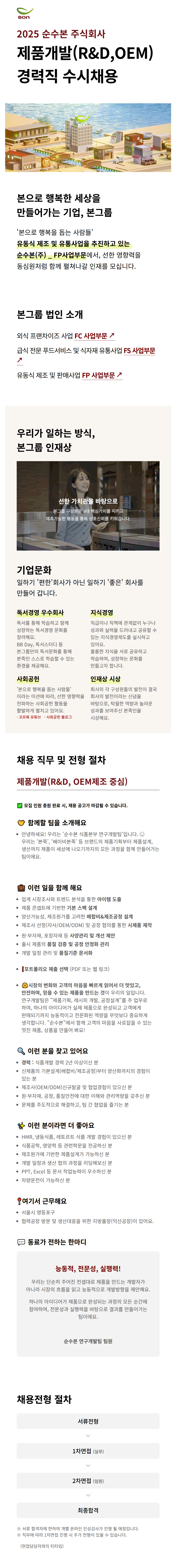 ¿¬±¸°³¹ßÆÀÀº "Á¦Ç°±âȹ, ·¹½ÃÇÇ °³¹ß, °øÁ¤¼³°è"¸¦ ÁÖ ¾÷¹«·Î ÇÏ¿©, ÇϳªÀÇ ¾ÆÀ̵ð¾î°¡ ½ÇÁ¦ Á¦Ç°À¸·Î ¿Ï¼ºµÇ°í °í°´¿¡°Ô ÆÇ¸ÅµÇ±â±îÁö ´Éµ¿ÀûÀ̰í Àü¹®ÈµÈ ¿ª·®À» ¹«¾ùº¸´Ù Áß¿äÇÏ°Ô »ý°¢ÇÕ´Ï´Ù. "¼ø¼öº»"¿¡¼ ÇÔ²² °í°´ÀÇ ¸¶À½À» »ç·ÎÀâÀ» ¼ö ÀÖ´Â ¸ÚÁø Á¦Ç°, »óǰÀ» ¸¸µé¾î ºÁ¿ä!