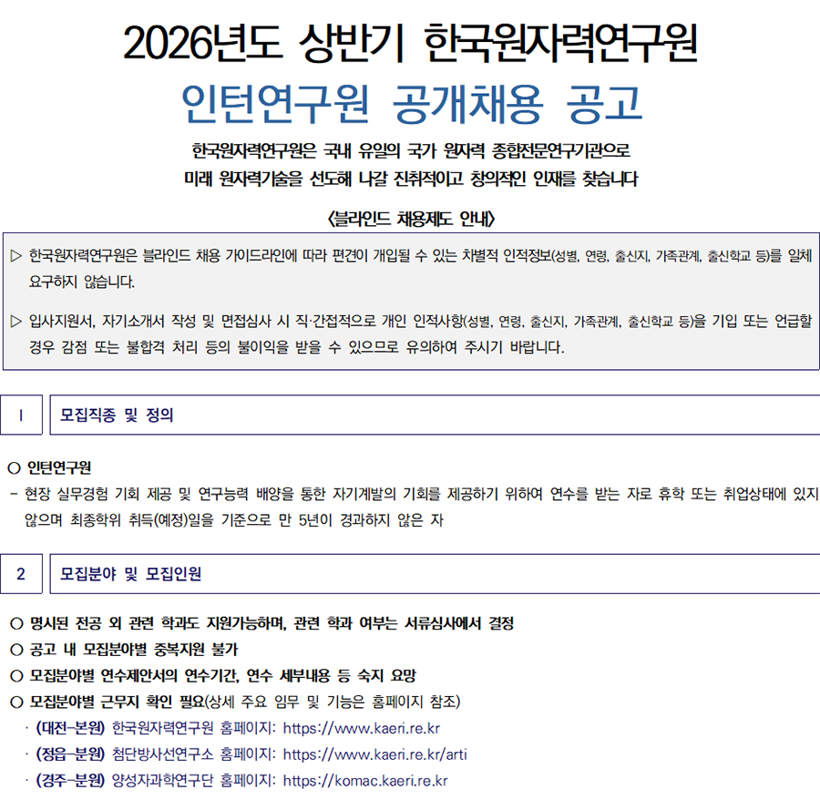 ¡Û Á¢¼öó: Çѱ¹¿øÀڷ¿¬±¸¿ø ä¿ë ȨÆäÀÌÁö: https://kaeri.recruitment.kr