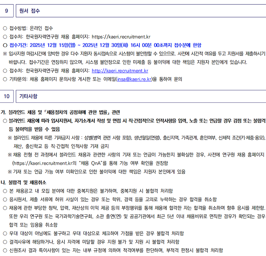 (https://kaeri.recruitment.krÀÇ "ä¿ë QnA"¸¦ ÅëÇØ °¡´É ¿©ºÎ È®ÀÎÀ» ±ÇÀåÇÔ