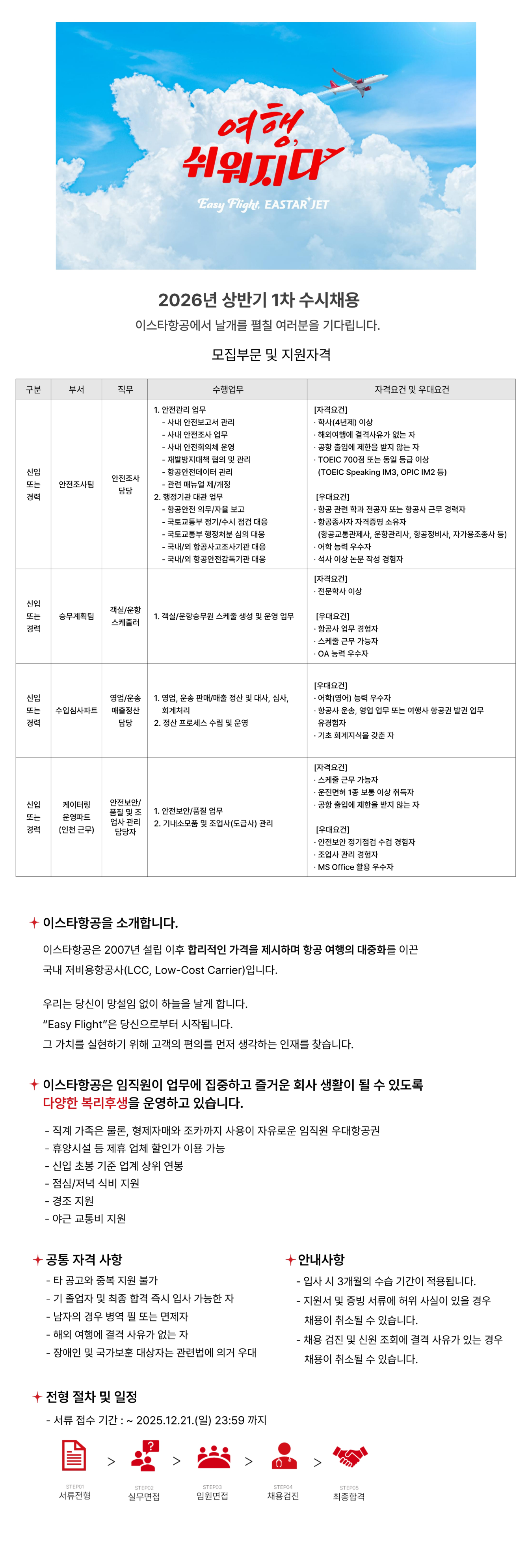 [À̽ºÅ¸Ç×°ø] 2026³â »ó¹Ý±â 1Â÷ ¼ö½Ãä¿ë(¾ÈÀüÁ¶»ç, ½Â¹«°èȹÆÀ, ¼öÀԽɻç, ÄÉÀÌÅ͸µ¿î¿µÆÄÆ®)