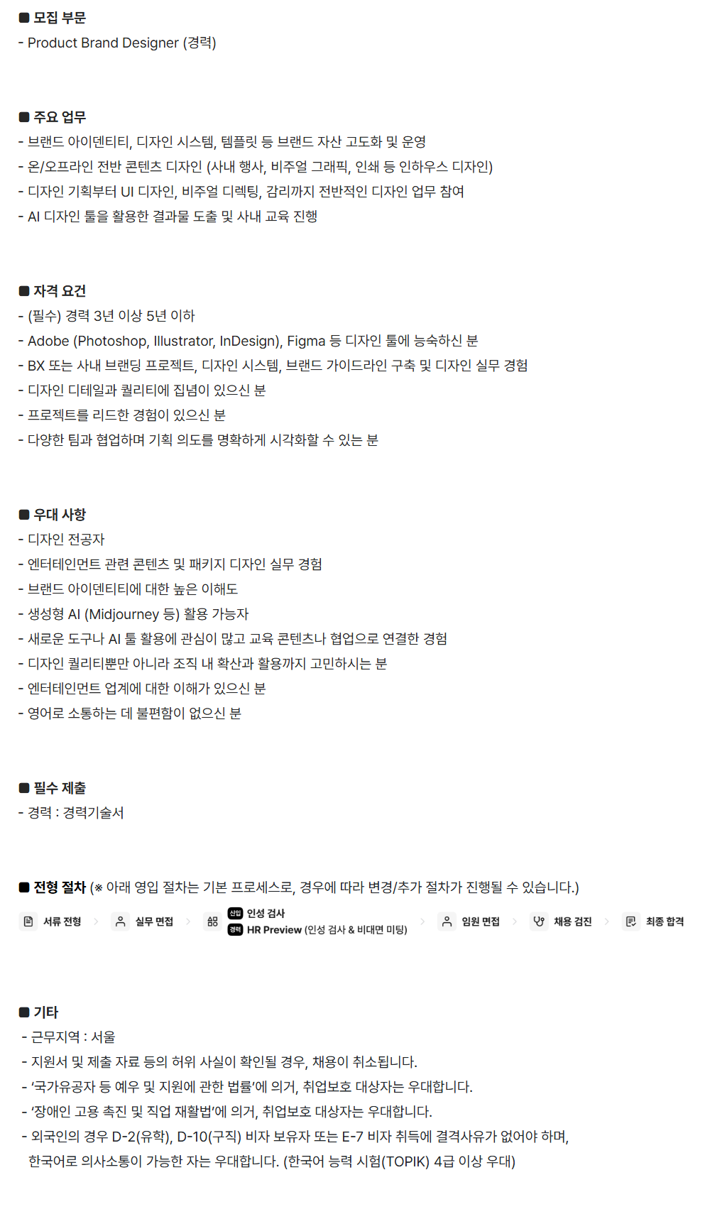 [JYP ENTERTAINMENT] Product Brand Designer (°æ·Â)