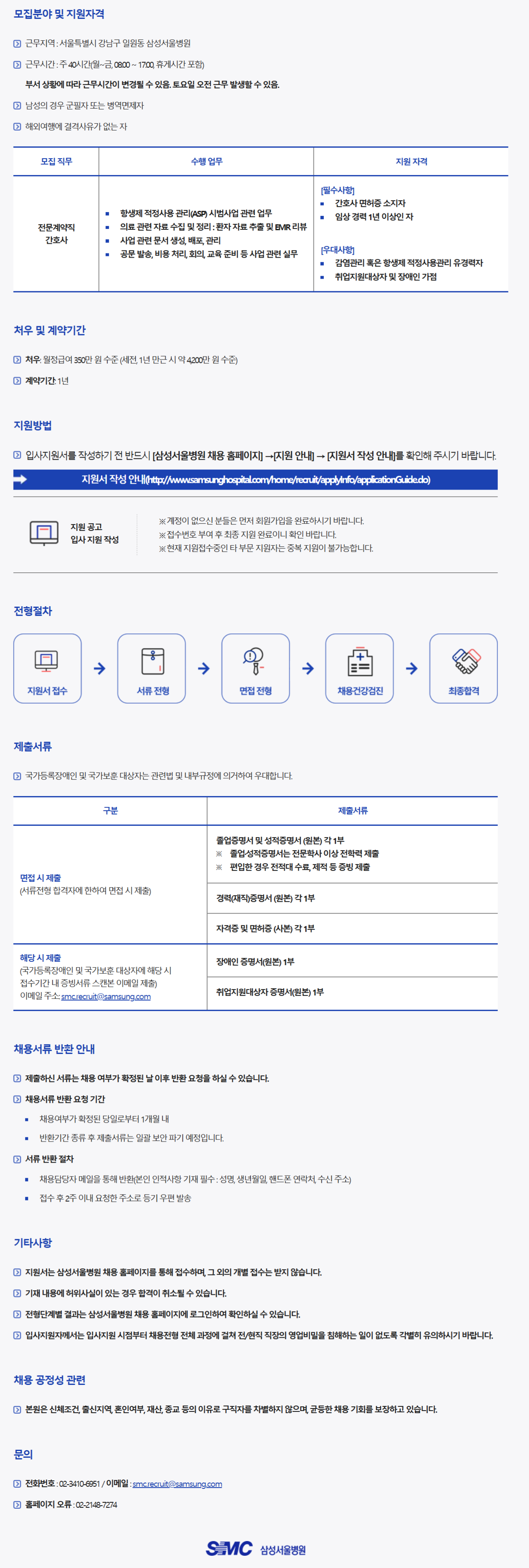 ¸ðÁý Á÷¹« ¼öÇà ¾÷¹« Áö¿ø ÀÚ°Ý Àü¹®°è¾àÁ÷ °£È£»ç Ç×»ýÁ¦ ÀûÁ¤»ç¿ë °ü¸®(ASP) ½Ã¹ü»ç¾÷ °ü·Ã ¾÷¹« ÀÇ·á °ü·Ã ÀÚ·á ¼öÁý ¹× Á¤¸® : ȯÀÚ ÀÚ·á ÃßÃâ ¹× EMR ¸®ºä »ç¾÷ °ü·Ã ¹®¼­ »ý¼º, ¹èÆ÷, °ü¸® °ø¹® ¹ß¼Û, ºñ¿ë ó¸®, ȸÀÇ, ±³À° Áغñ µî »ç¾÷ °ü·Ã ½Ç¹« [Çʼö»çÇ×] °£È£»ç ¸éÇãÁõ ¼ÒÁöÀÚ ÀÓ»ó °æ·Â 1³â ÀÌ»óÀÎ ÀÚ [¿ì´ë»çÇ×] °¨¿°°ü¸® ȤÀº Ç×»ýÁ¦ ÀûÁ¤»ç¿ë°ü¸® À¯°æ·ÂÀÚ Ãë¾÷Áö¿ø´ë»óÀÚ ¹× Àå¾ÖÀÎ °¡Á¡