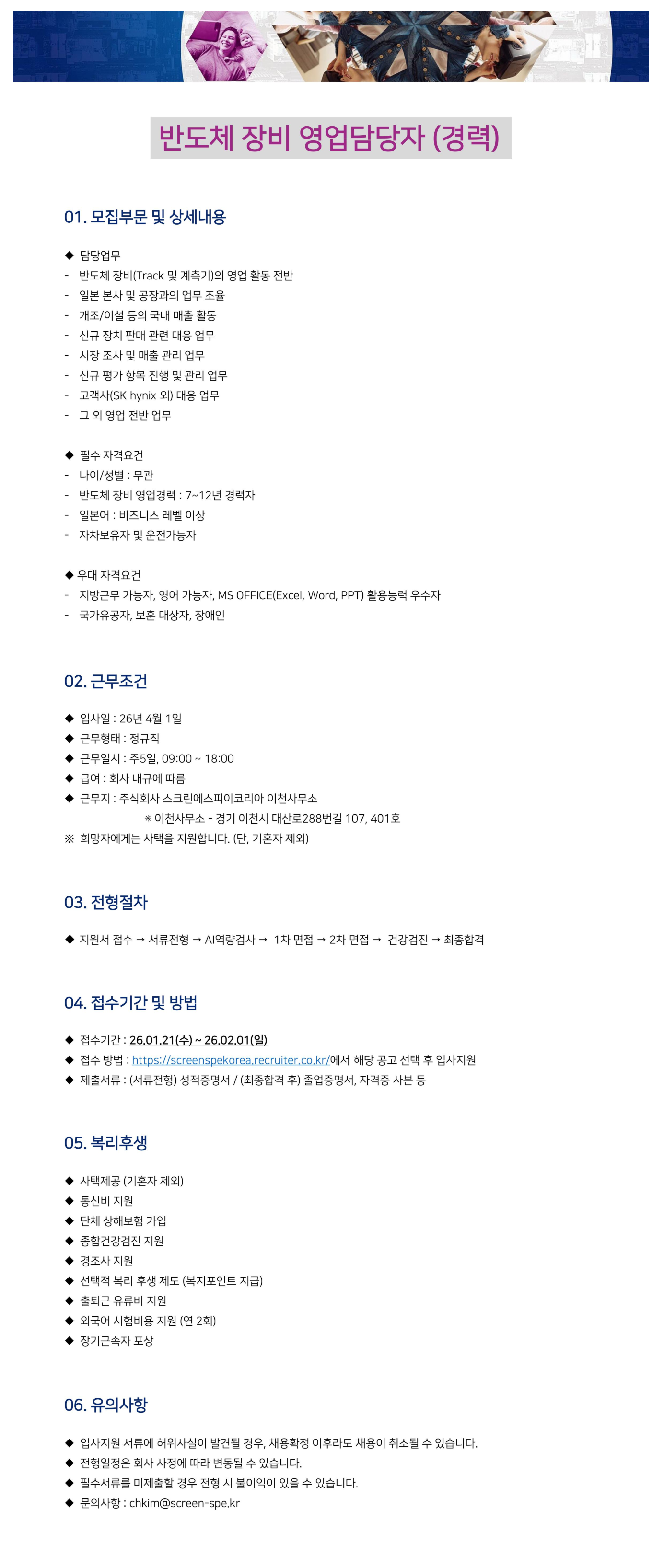 ¹ÝµµÃ¼ Àåºñ ¿µ¾÷´ã´çÀÚ (°æ·Â)