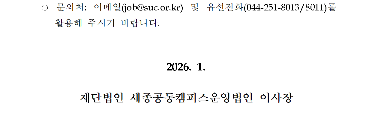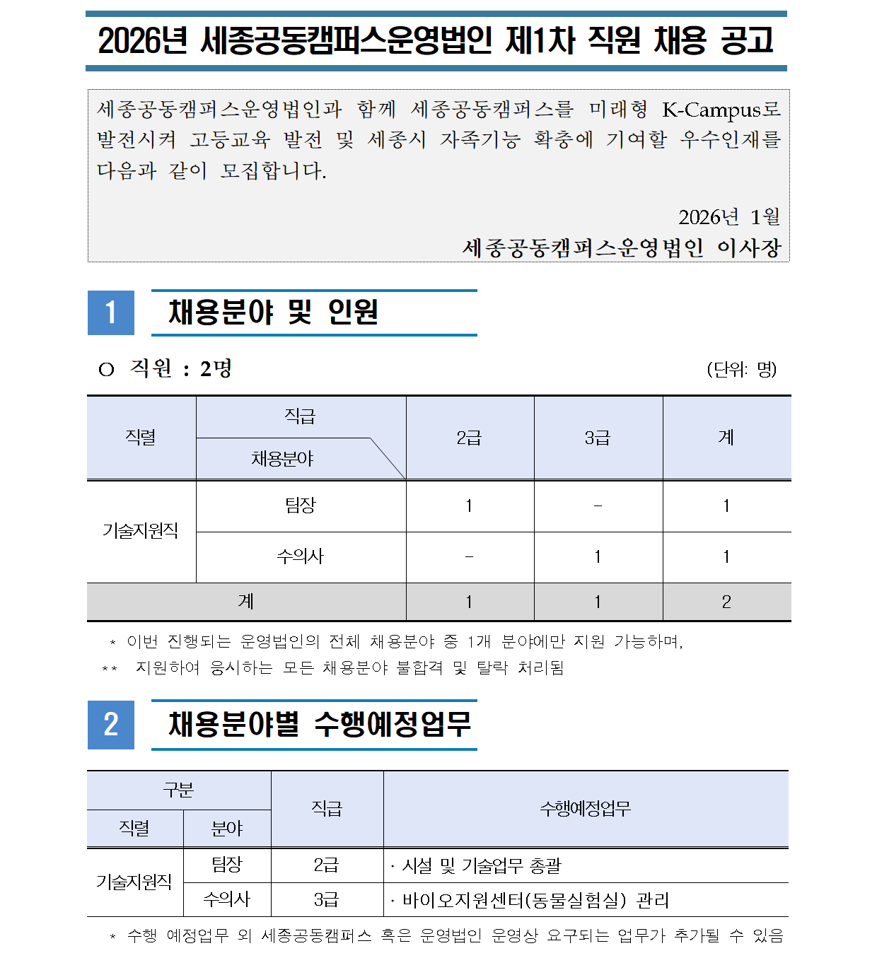 2026³â ¼¼Á¾°øµ¿Ä·ÆÛ½º¿î¿µ¹ýÀÎ Á¦1Â÷ Á÷¿ø ä¿ë °ø°í