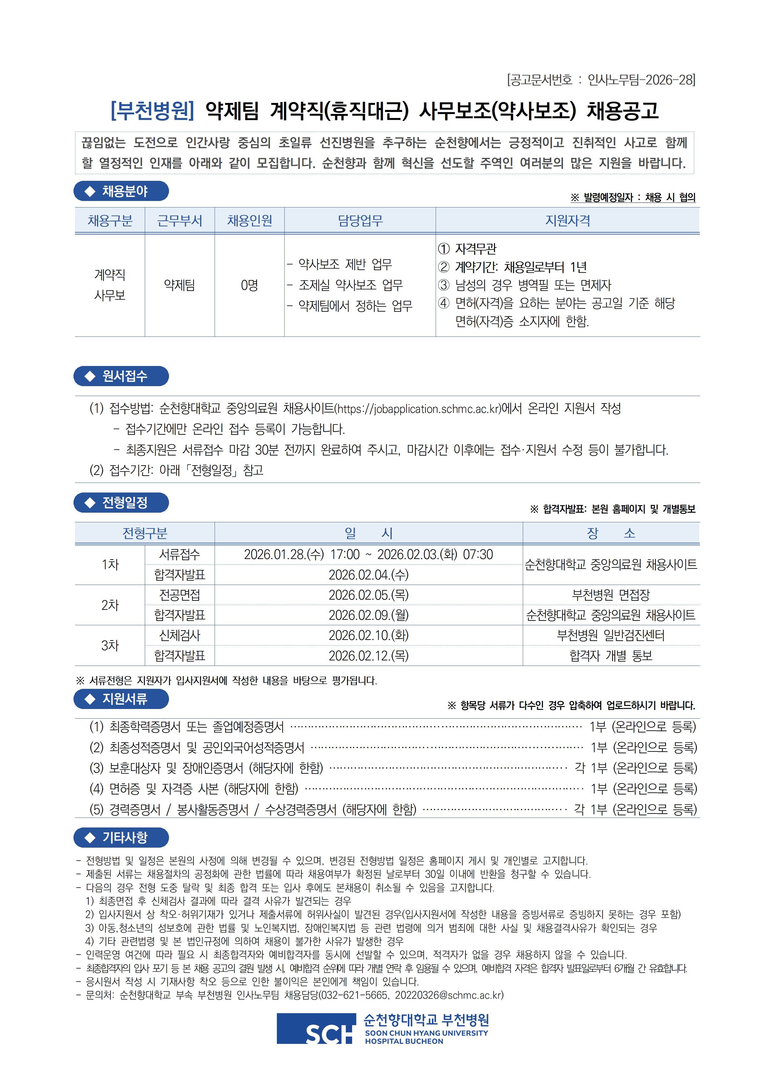 ¾àÁ¦ÆÀ °è¾àÁ÷(ÈÞÁ÷´ë±Ù) »ç¹«º¸Á¶(¾à»çº¸Á¶) ä¿ë°ø°í