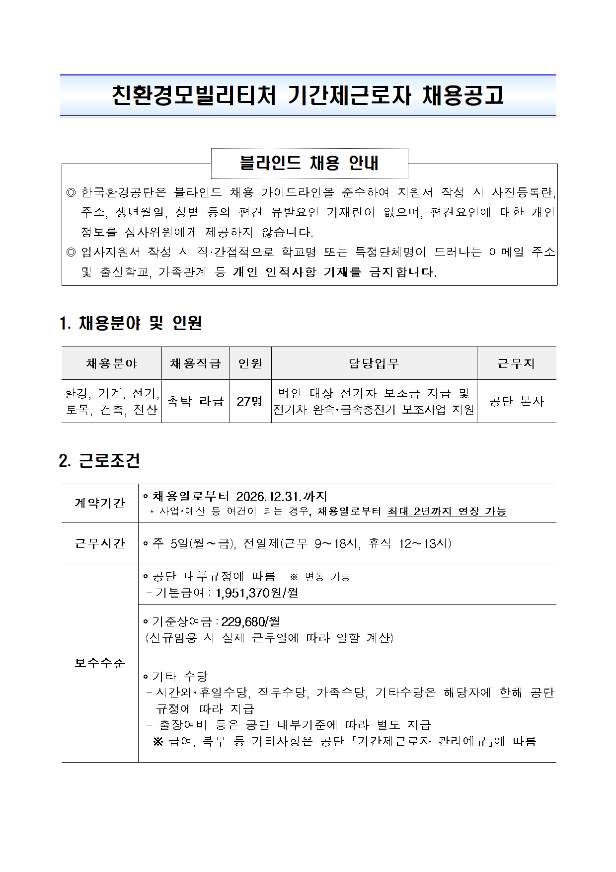 Çѱ¹È¯°æ°ø´Ü ģȯ°æ¸ðºô¸®Æ¼Ã³ ±â°£Á¦±Ù·ÎÀÚ(ÃËŹ¶ó±Þ) ä¿ë °ø°í