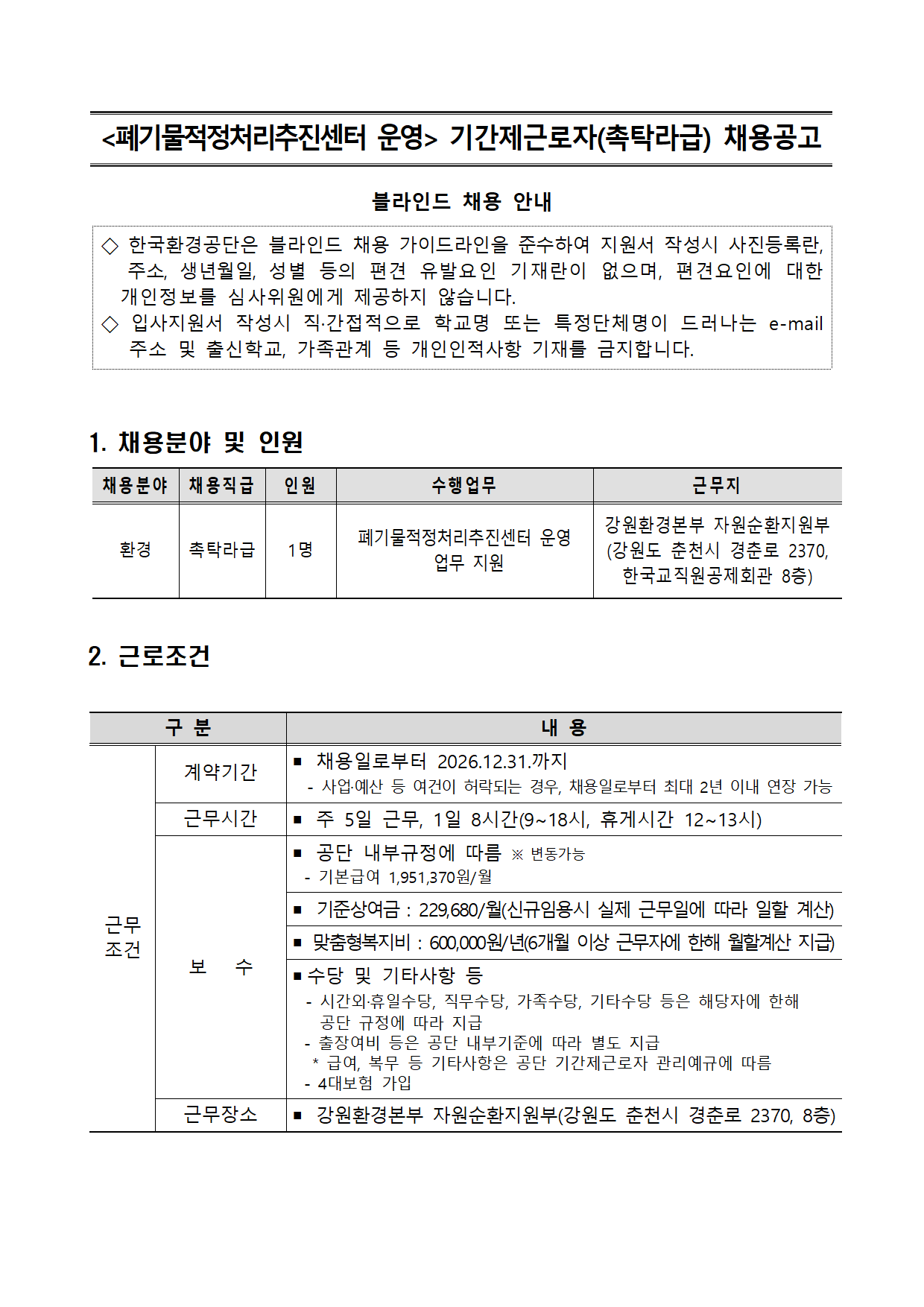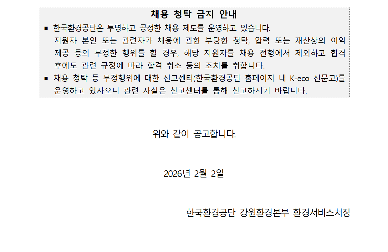 [°¿øÈ¯°æº»ºÎ]2026³â Æó±â¹°ÀûÁ¤Ã³¸®ÃßÁø¼¾ÅÍ ¿î¿µ»ç¾÷ ±â°£Á¦ ±Ù·ÎÀÚ(ÃËŹ¶ó±Þ) ä¿ë °ø°í