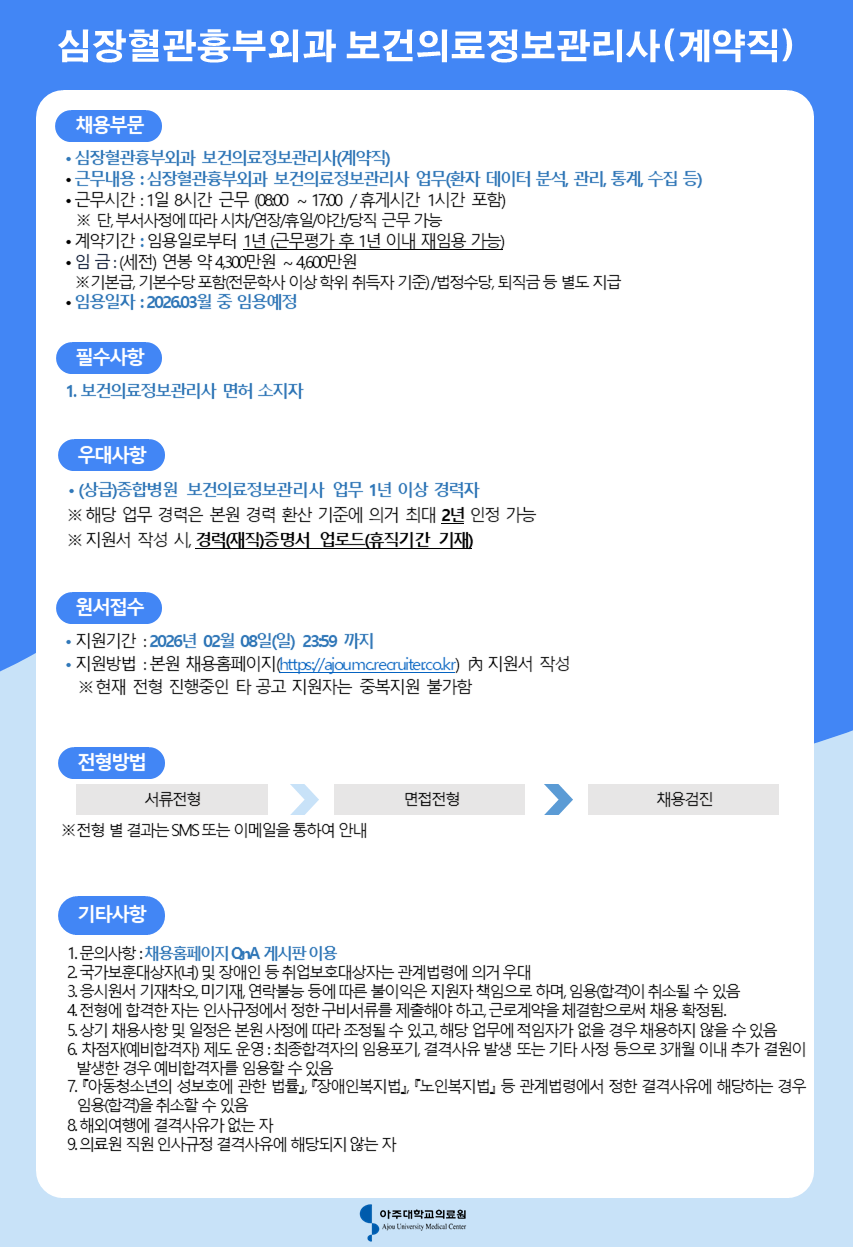 ½ÉÀåÇ÷°üÈäºÎ¿Ü°ú º¸°ÇÀÇ·áÁ¤º¸°ü¸®»ç(°è¾àÁ÷)