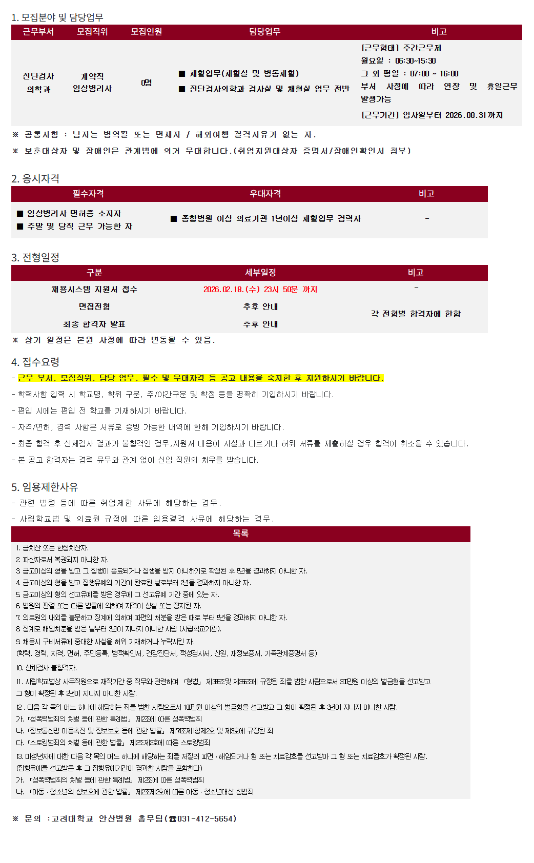 ¡á Á¾ÇÕº´¿ø ÀÌ»ó ÀÇ·á±â°ü 1³âÀÌ»ó äÇ÷¾÷¹« °æ·ÂÀÚ